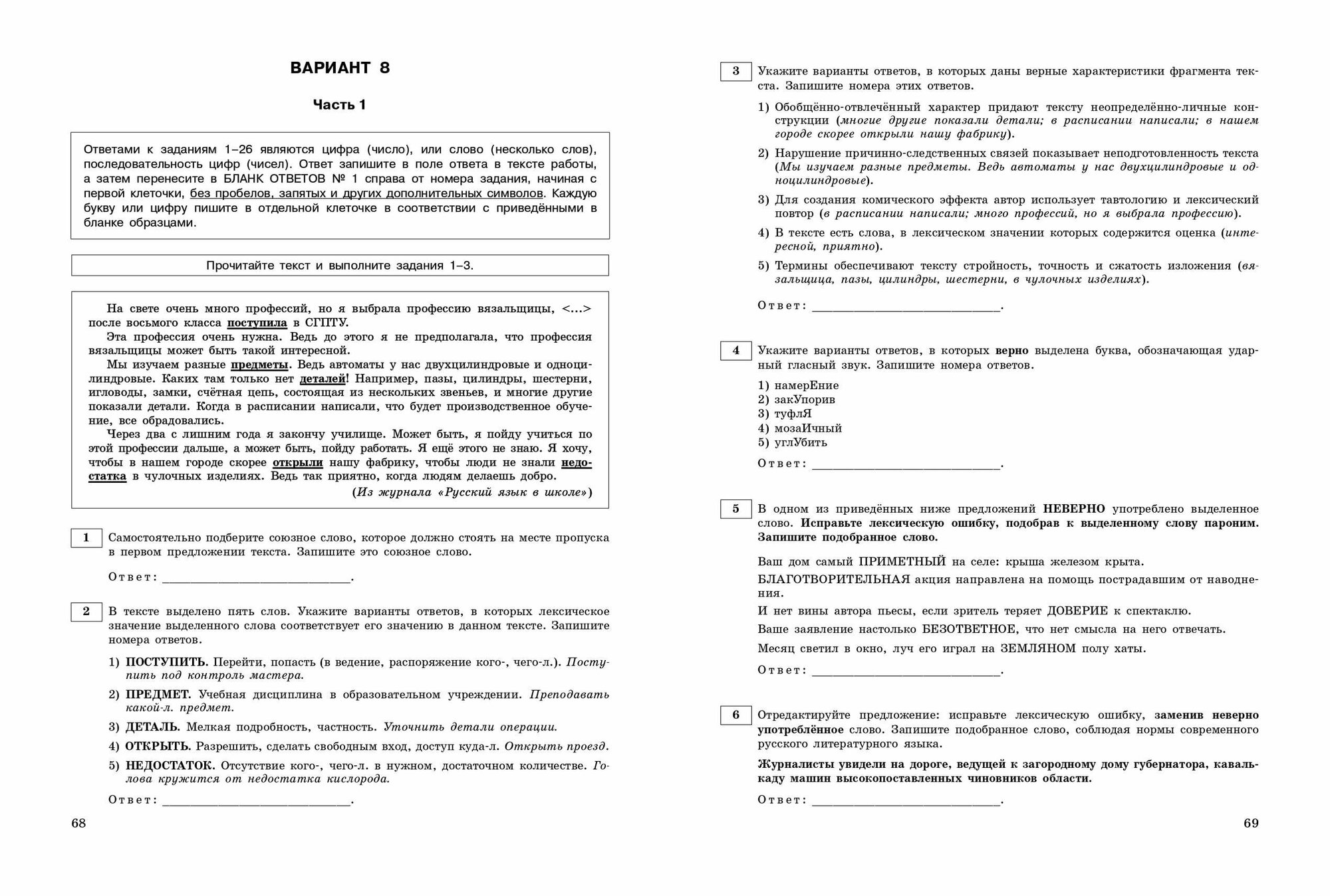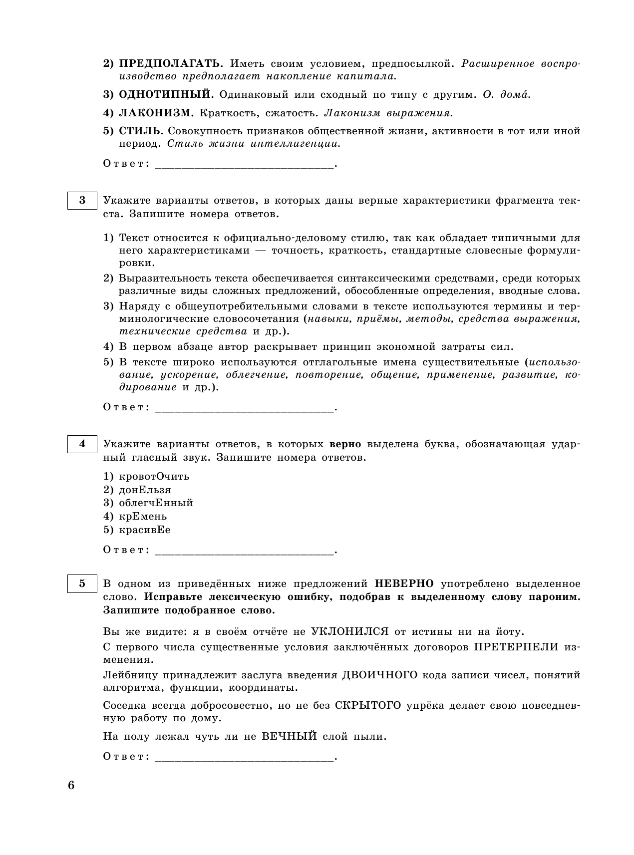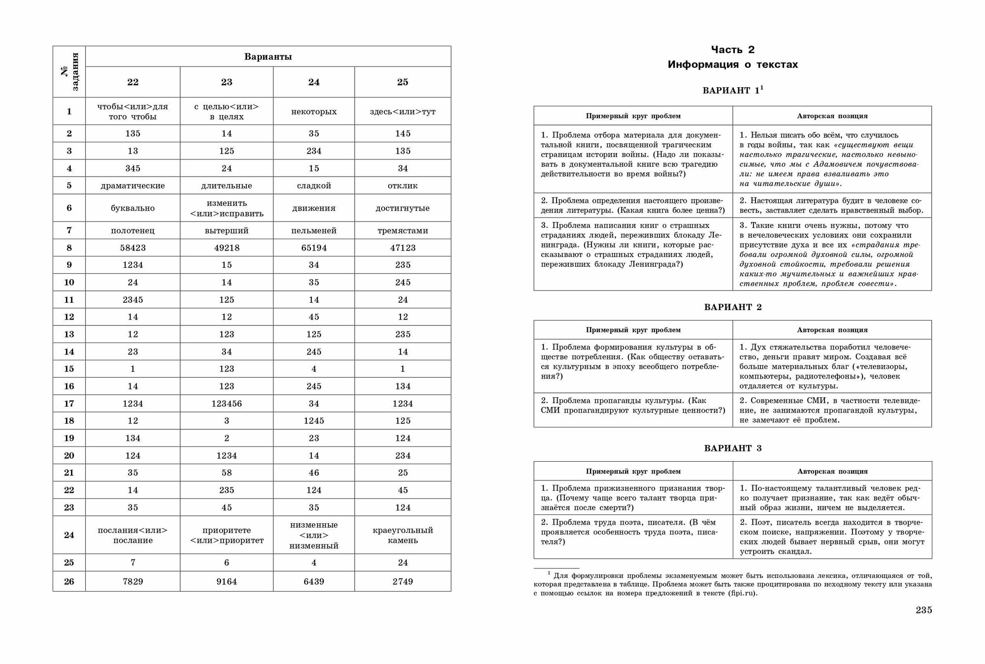 • ответы к заданиям;