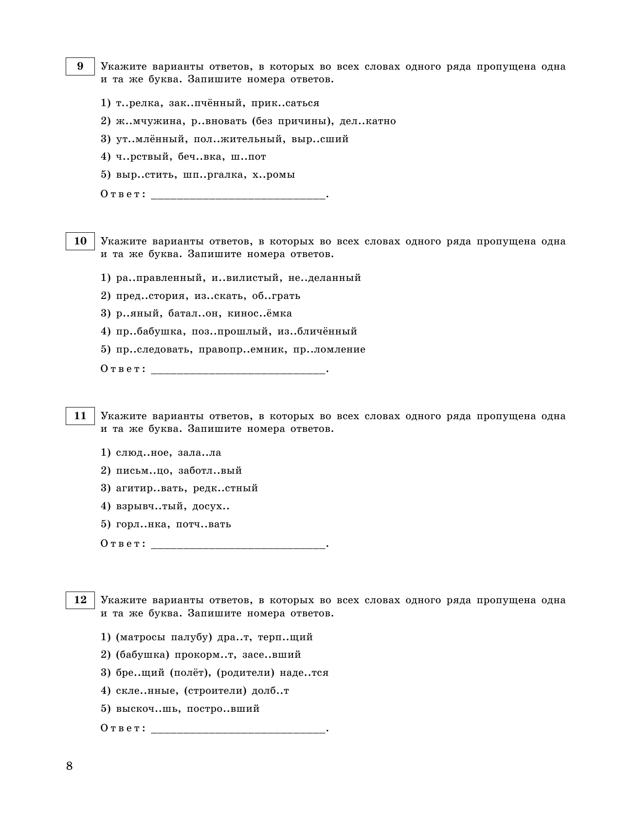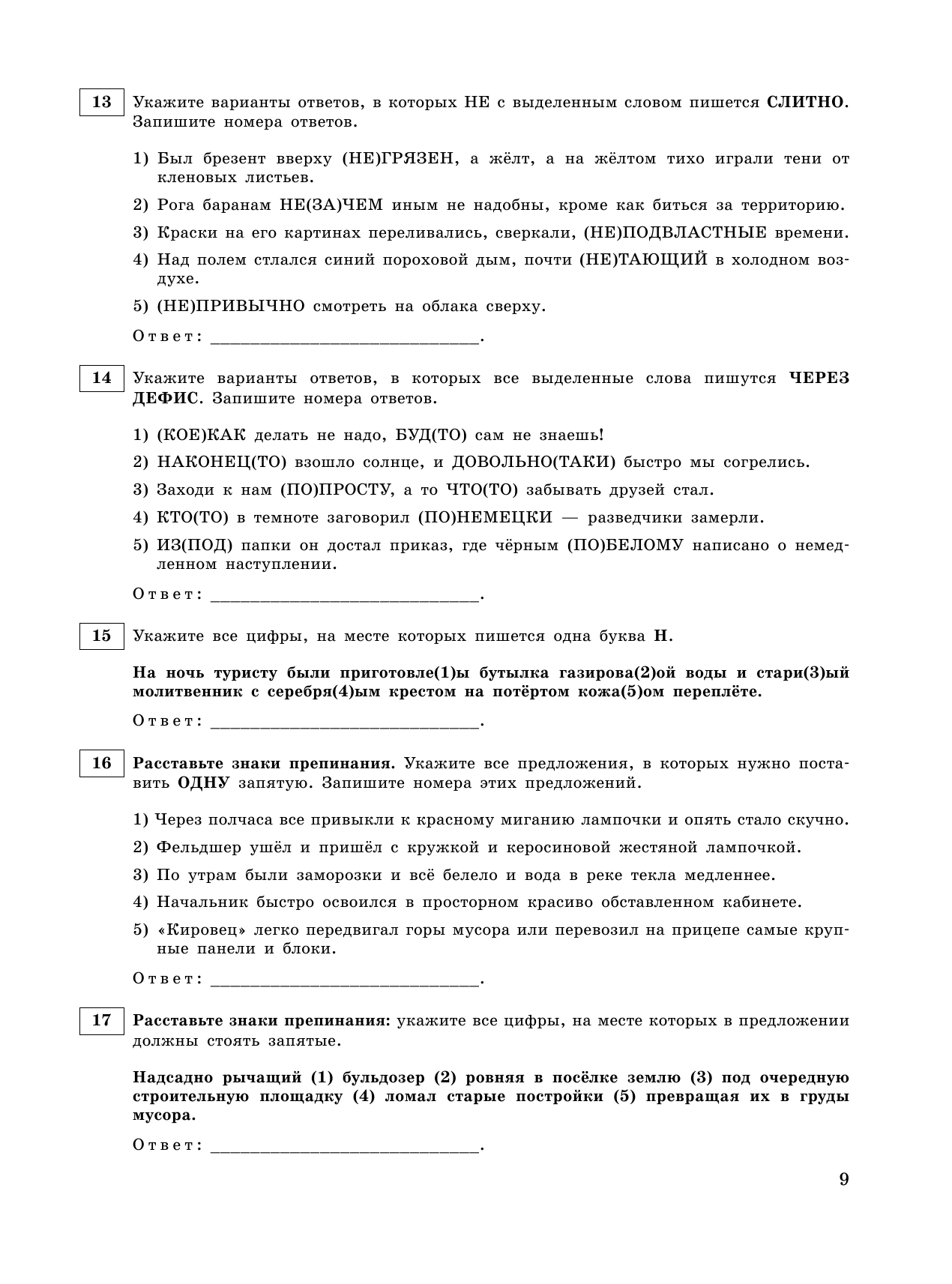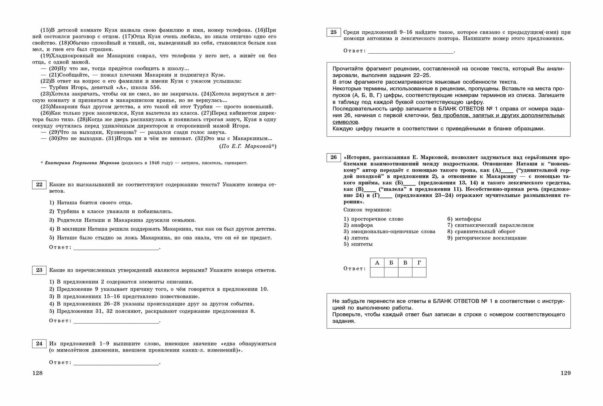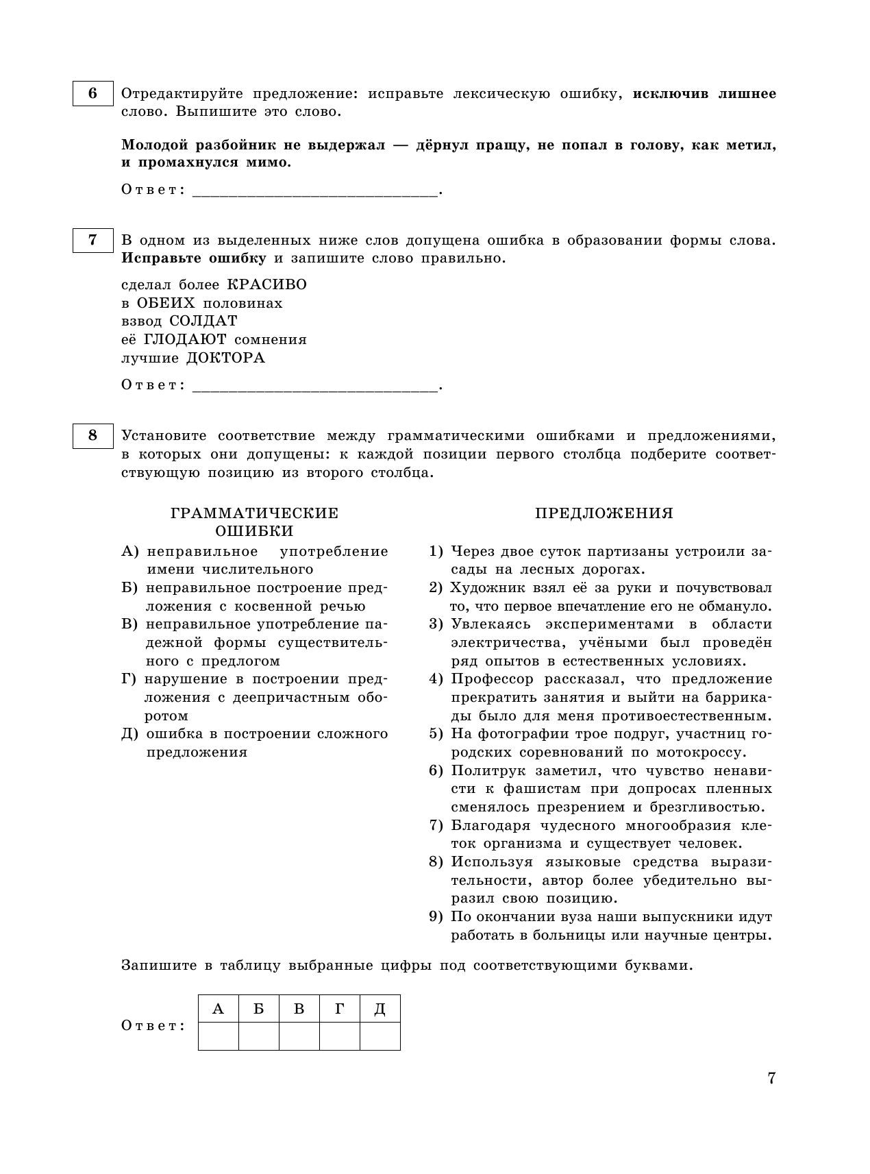• ответы к заданиям;