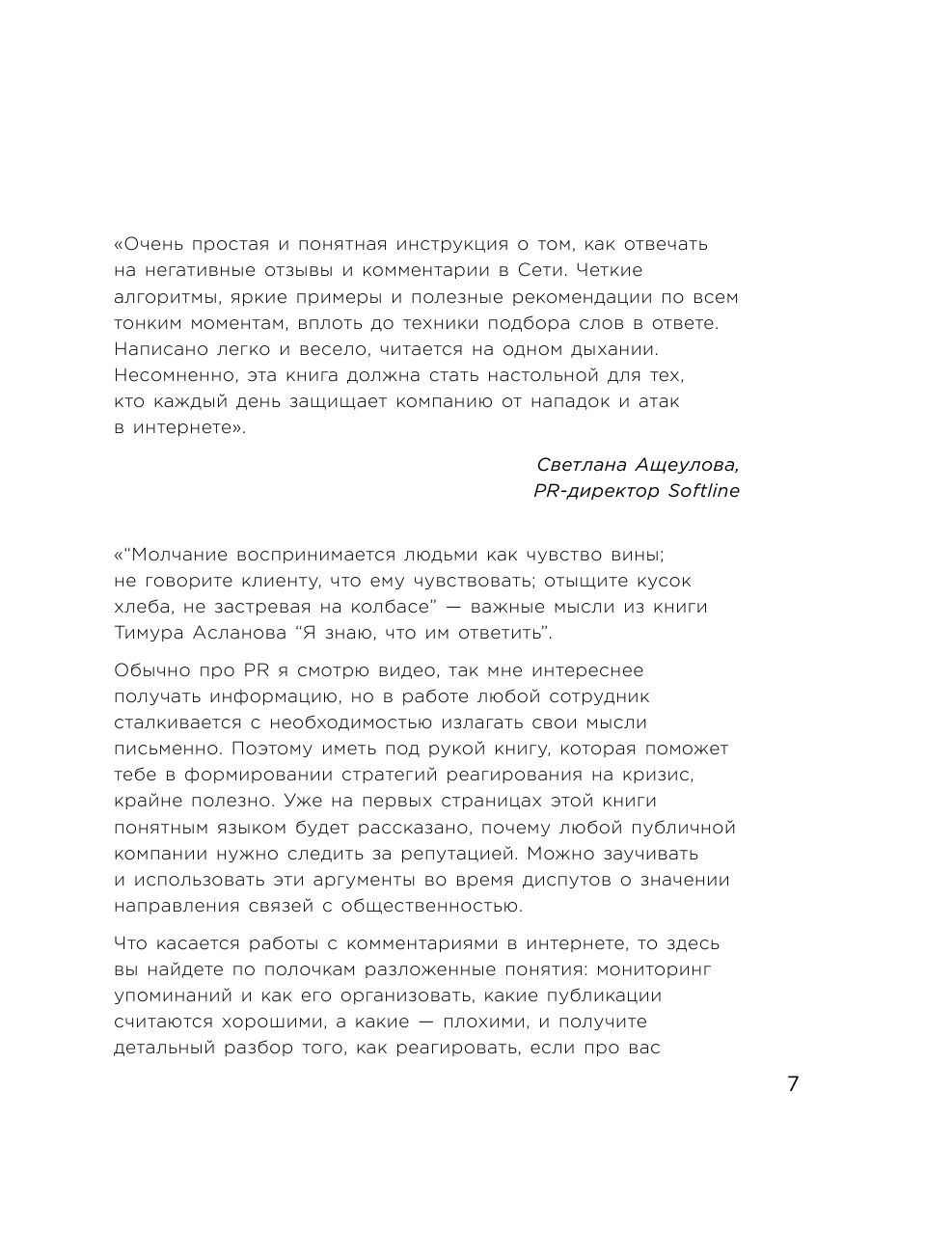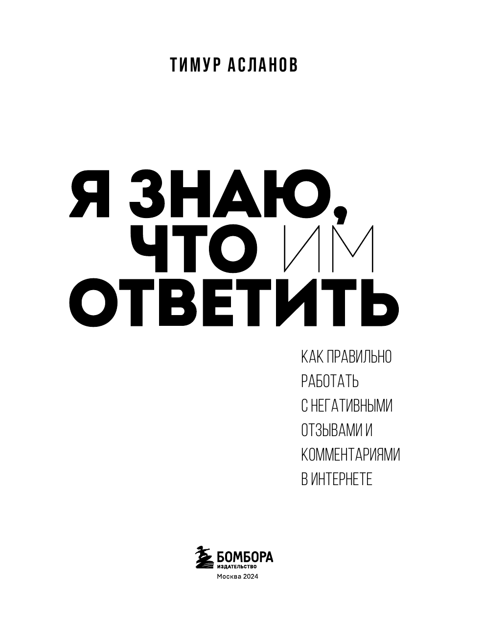 Я знаю что им ответить. Как правильно работать с негативными отзывами и комментариями в интернете (Асланов Тимур Анатольевич); ООО "Издательство "Эксмо", 2023
