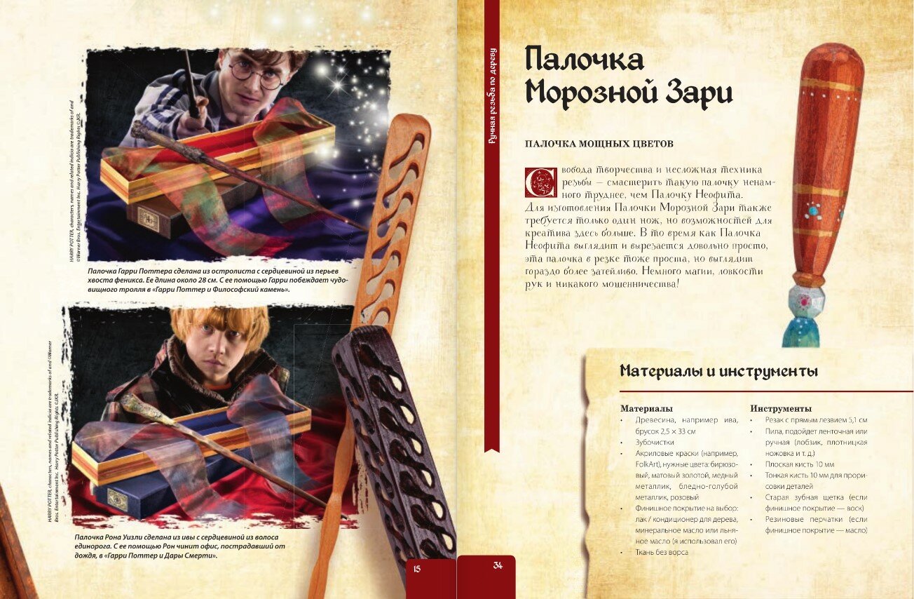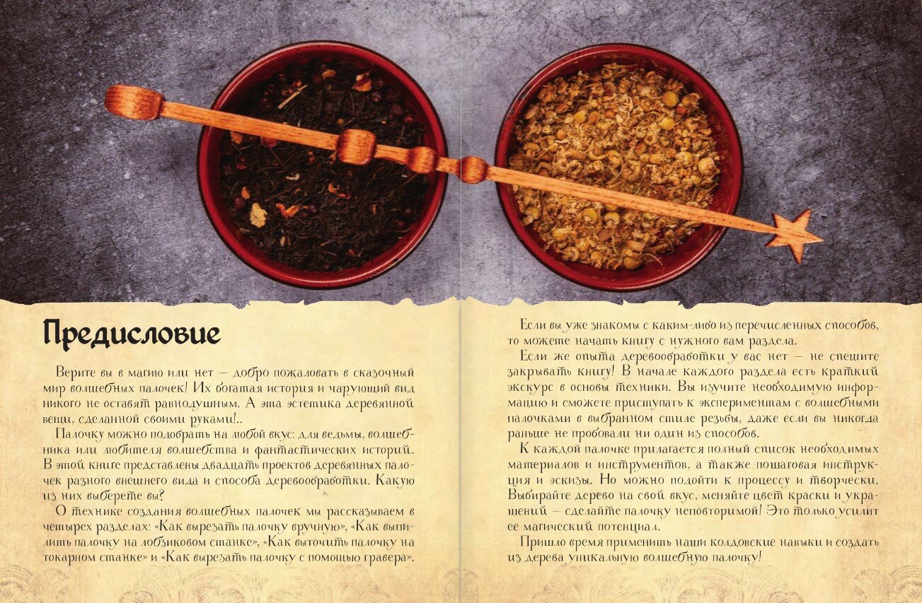 Перед вами единственная в своем роде книга - руководство по созданию волшебных палочек. Четыре инструмента, четыре техники - и множество идей для проектов, ограниченных лишь вашей фантазией! Даже если вы никогда не увлекались резьбой по дереву, эта книга раскроет перед вами все тонкости удивительного ремесла и научит создавать прекрасные и уникальные волшебные палочки своими руками. Уже готовы приступить к созданию первой палочки? Тогда вперед, магия в ваших руках!