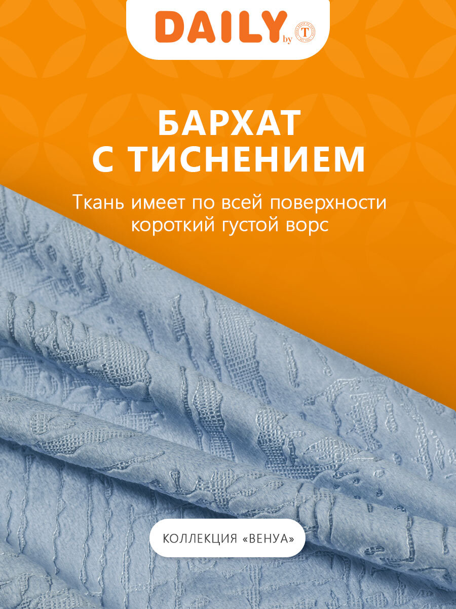 Штора с тисненым рисунком, который получается на ткани за счет раскладки ворса в различные направления, после используется очень горячий пресс. Бархат имеет по всей поверхности короткий равномерно густой ворс. Лицевая сторона ворсистая, изнаночная гладкая. Хотя при производстве ткань получается матовой, при разном освещении и под разными углами она способна переливаться оттенками. Уход, это сухие методы чистки и отпаривание с изнаночной стороны. Тип крепления: шторная лента шириной 6 см, которую можно стягивать, создавая красивую драпировку. Повесить портьеру на такой ленте можно при помощи крючков . Состав ткани: 100% полиэстер. шторы для гостиной спальни кабинета детской столовой зала дома дачи комнаты высота 270 на шторной ленте плотные бархат тиснение новоселье подарок