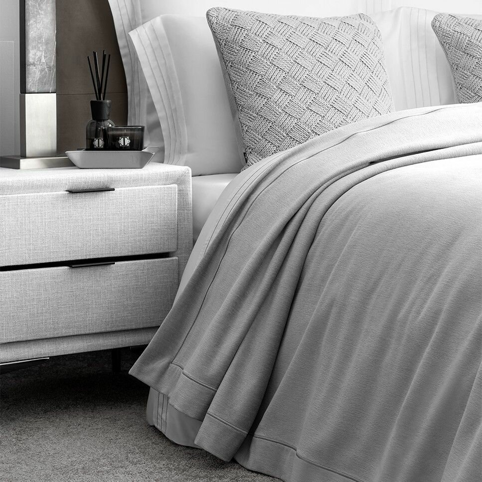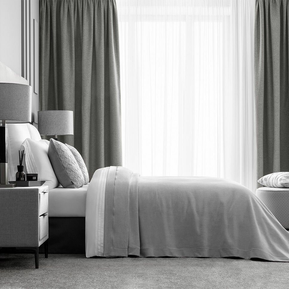 Лаконичное однотонное покрывало «» создано из высококачественного натурального хлопка. Ткань хорошо пропускает воздух и впитывает влагу, не накапливает статическое электричество. Покрывало можно стирать в домашних условиях, оно быстро высохнет. Нежные, слегка бархатистые шенилловые нити в хлопковом материале делают его более мягким и приятным на ощупь. Шенилловая ткань образует красивые складки, не сминается. Неяркий светло-серый оттенок покрывала дополнит современный интерьер спальни, оформленной в холодных тонах палитры. Эта модель по периметру оформлена тонкой ручной вышивкой.