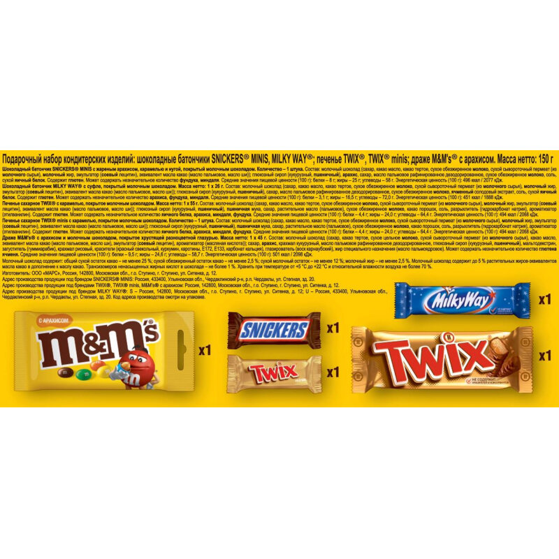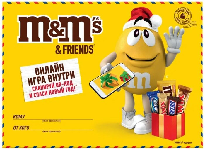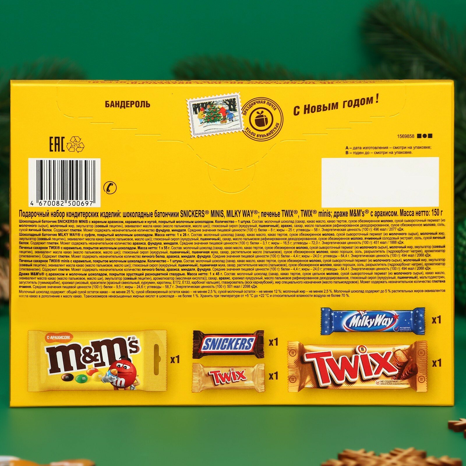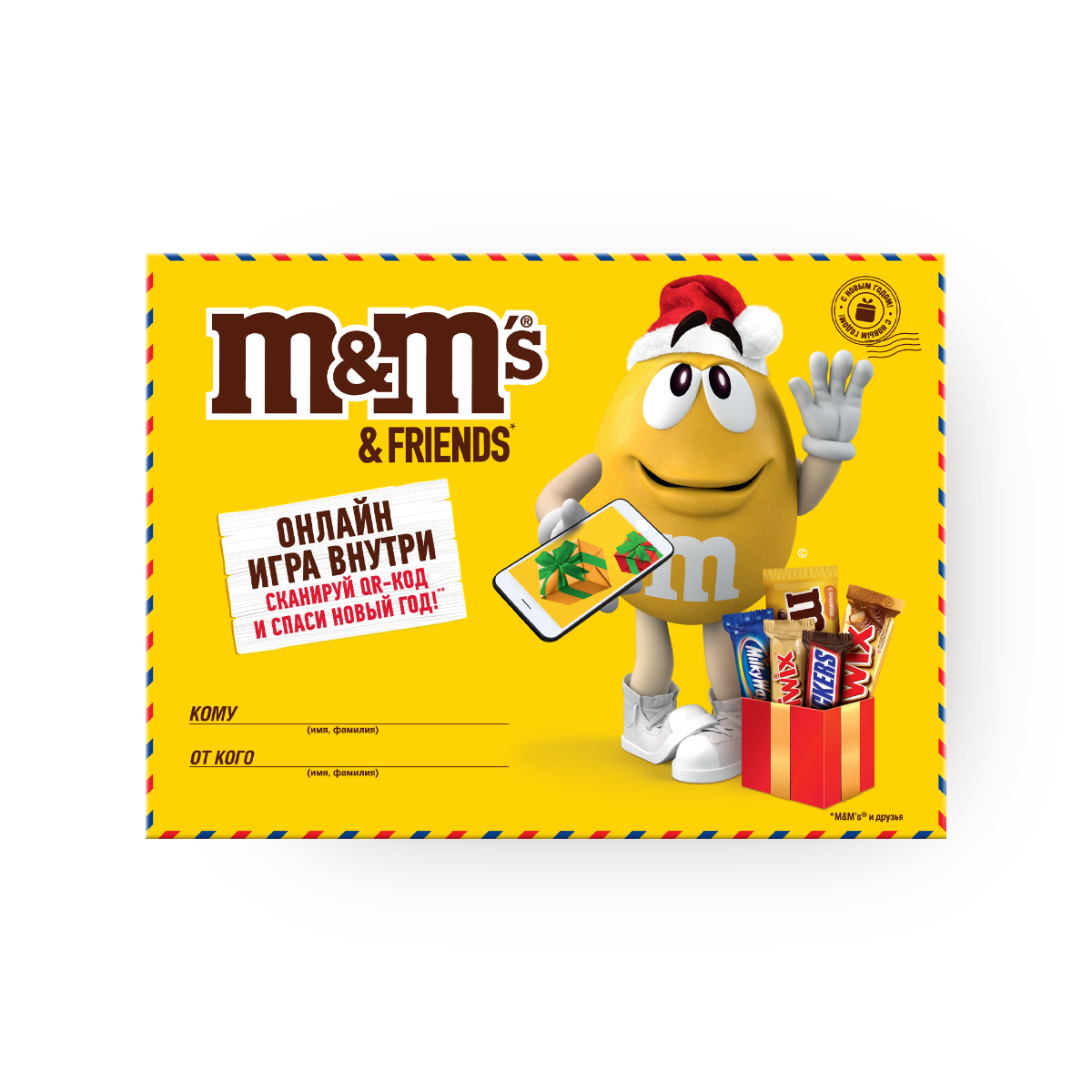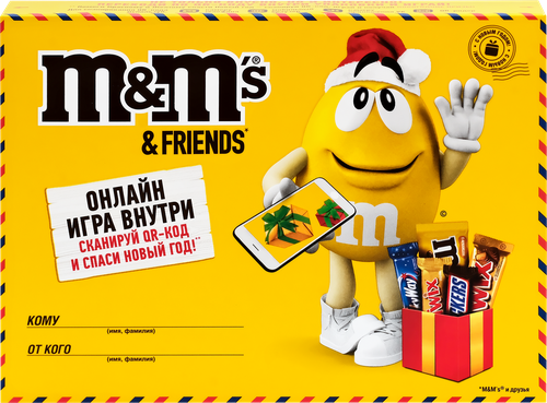 Подарочный набор M&M's & Friends Маленькая посылка способ порадовать близких в наступающий Новый год и Рождество 2024. Сладкий новогодний подарок содержит в себе драже M&M's, разнообразие шоколадных конфет Snickers, Mars, Twix, Milky Way. Новогодняя подарочная упаковка в форме посылки, веселые герои M&M's, любимые сладости отличное угощение на праздничный стол и прекрасный подарок для ребенка. Онлайн игра с героями M&Ms по QR коду внутри!
