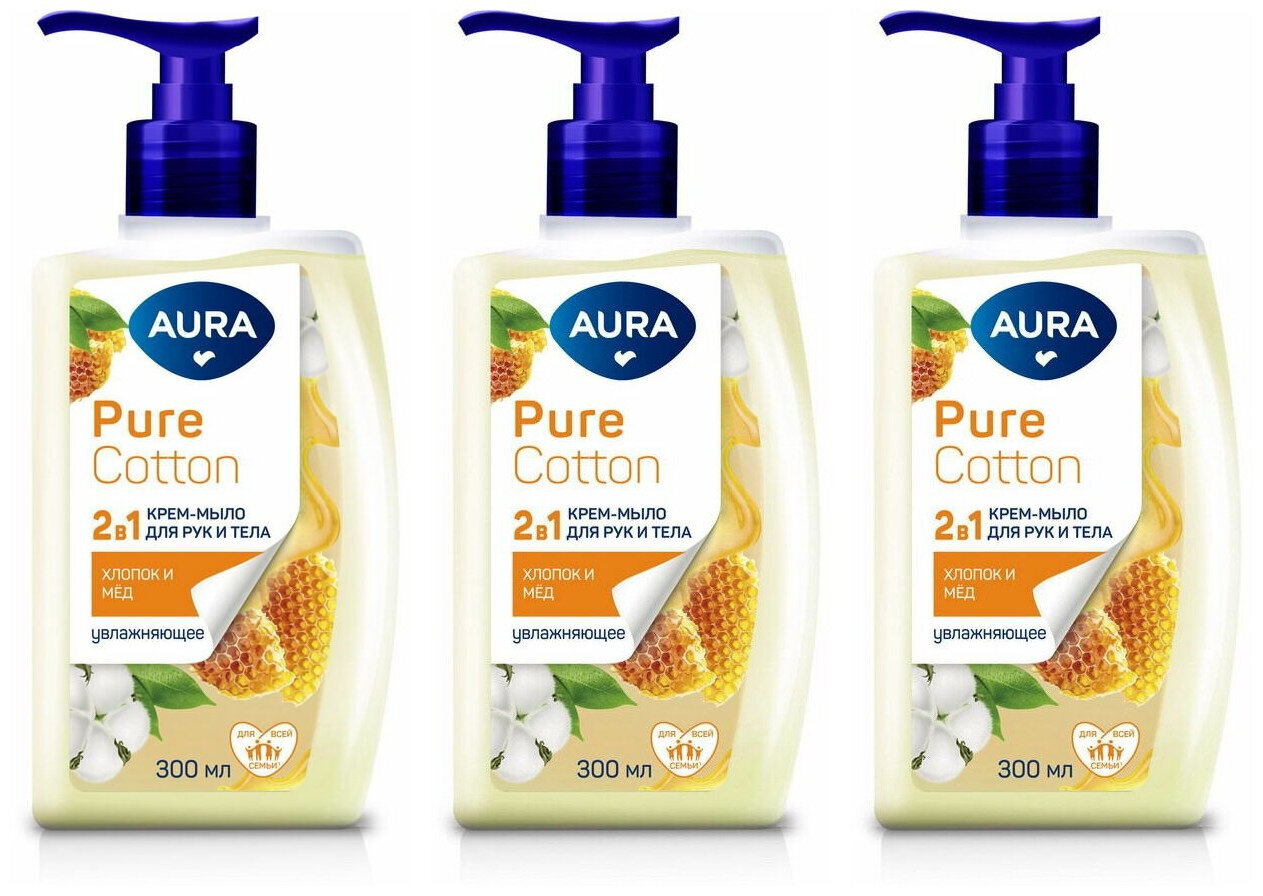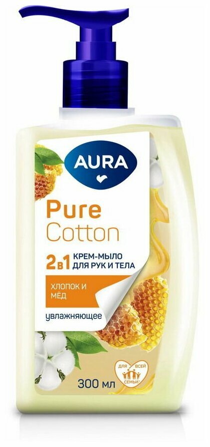 Крем-мыло Aura Pure Cotton 2в1 для рук и тела Хлопок и мед 300 мл