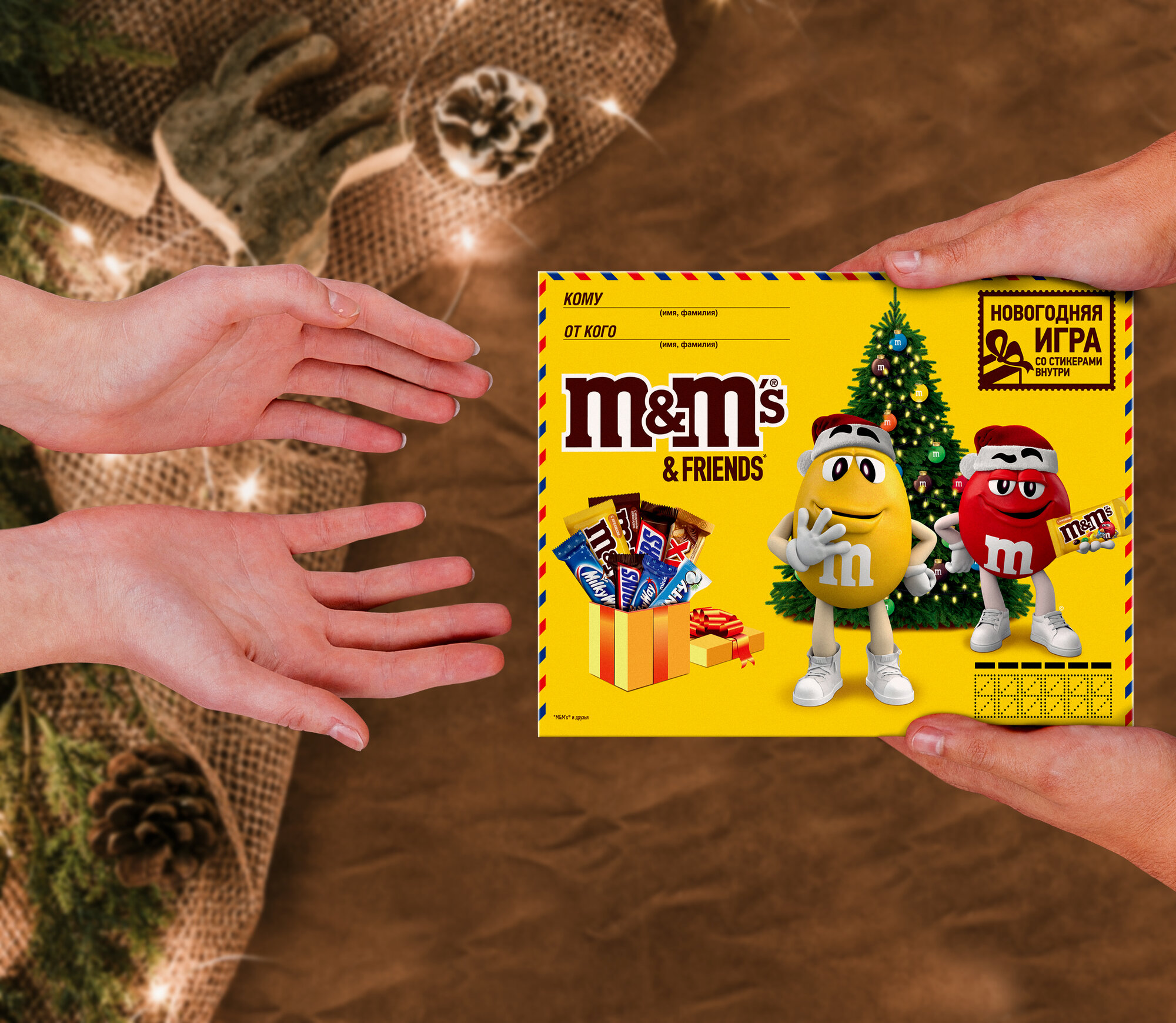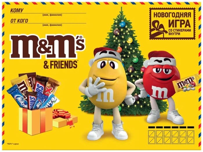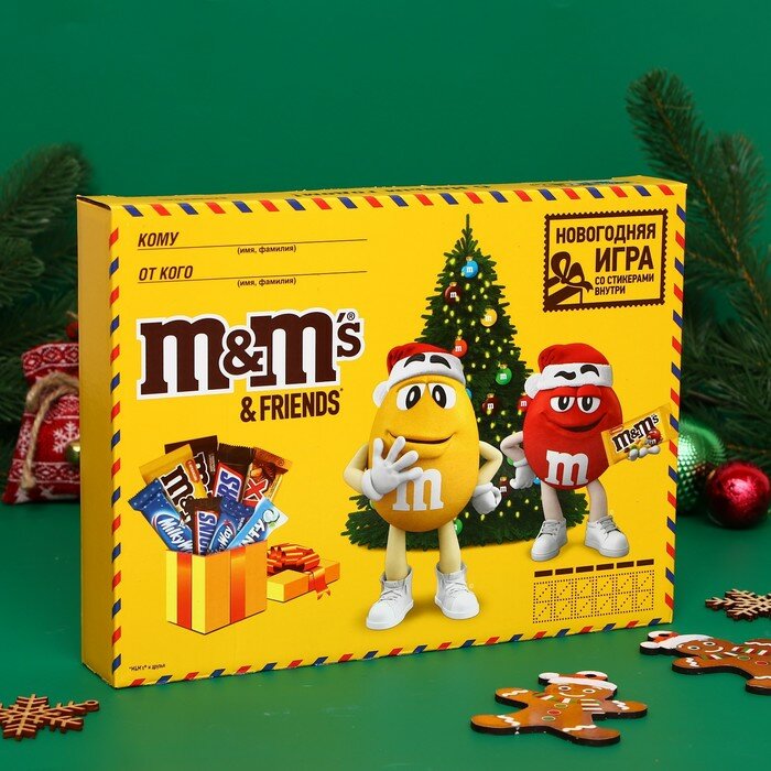 Подарочный набор M&M's & Friends Большая посылка способ порадовать близких в наступающий Новый год и Рождество 2024. Сладкий новогодний подарок содержит в себе драже M&M's и любимые шоколадные конфеты Snickers, Mars, Twix, Milky Way, Bounty. Новогодняя подарочная упаковка в форме посылки, новогодняя игра, веселые герои M&M's и любимые сладости отличное угощение на праздничный стол и прекрасный подарок для ребенка.