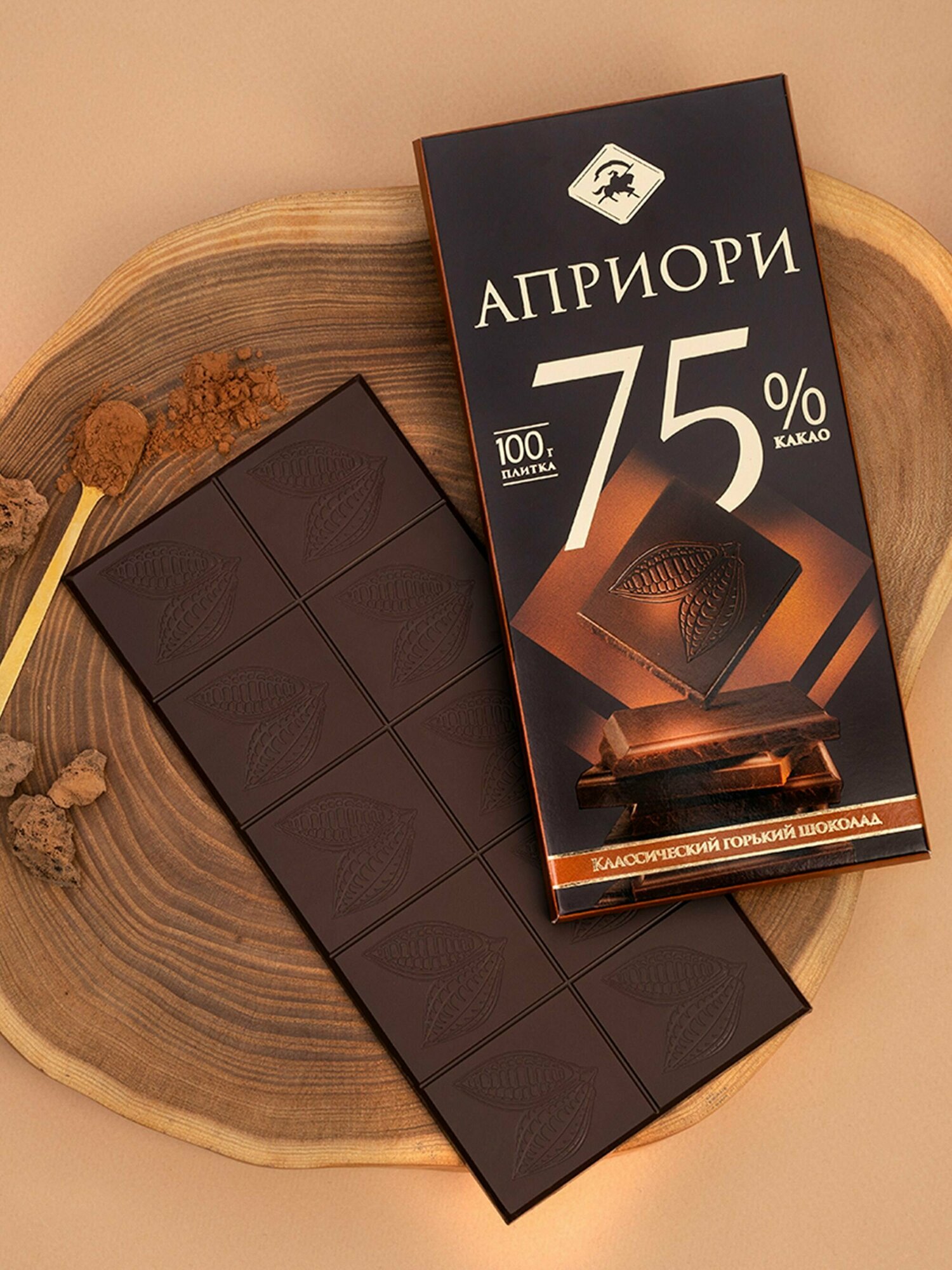 75% какао и 100% наслаждения! Насыщенный вкус горького шоколада APRIORI позволит побаловать себя в любой момент дня, ведь для простых радостей не нужен повод!