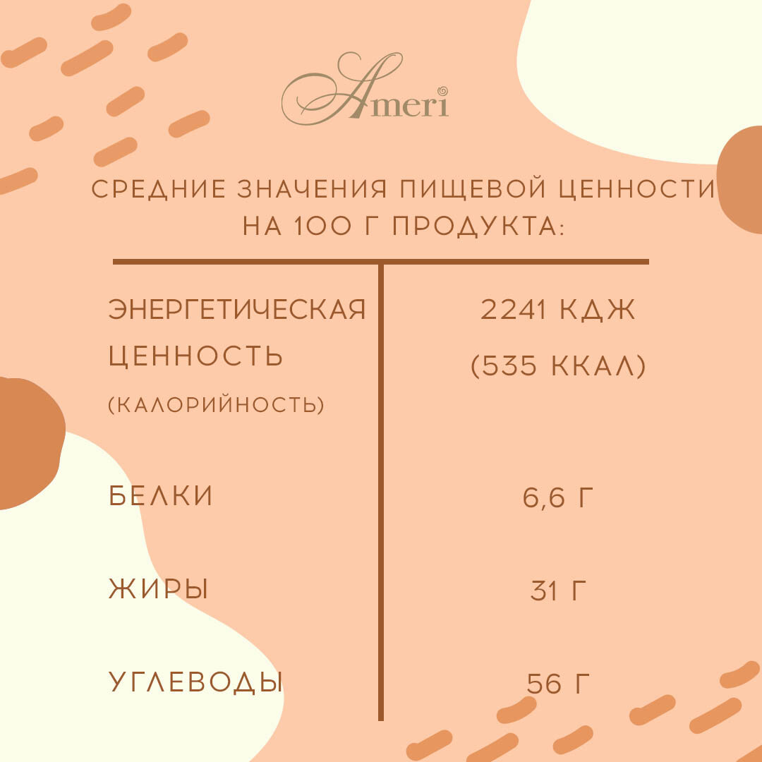 Молочный шоколад с кусочками карамели и морской солью торговой марки Ameri - это бельгийский шоколад высочайшего качества. При создании плиток используются только лучшие сорта какао и 100% какао масло в сочетании с отборными ингредиентами. Аромат лакомства демонстрирует мягкие молочно-шоколадные оттенки. Молочный шоколад с кусочками карамели и морской солью торговой марки Ameri станет элегантным дополнением к чашечке горячего напитка. Хранить шоколадные изделия рекомендуем вдали от прямых солнечных лучей и в помещении с влажностью не более 70% - так продукт не потеряет своих вкусовых качеств.