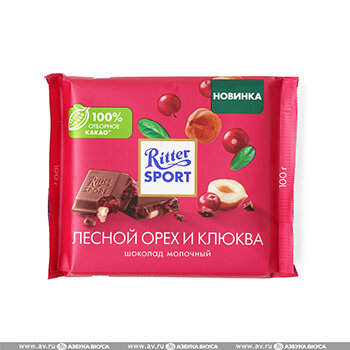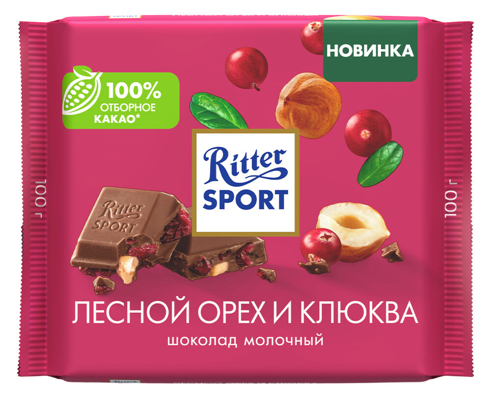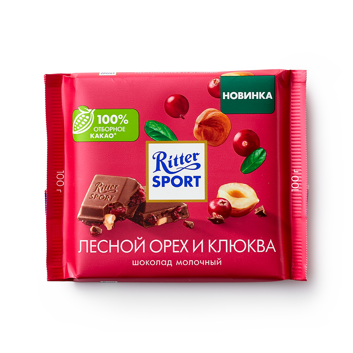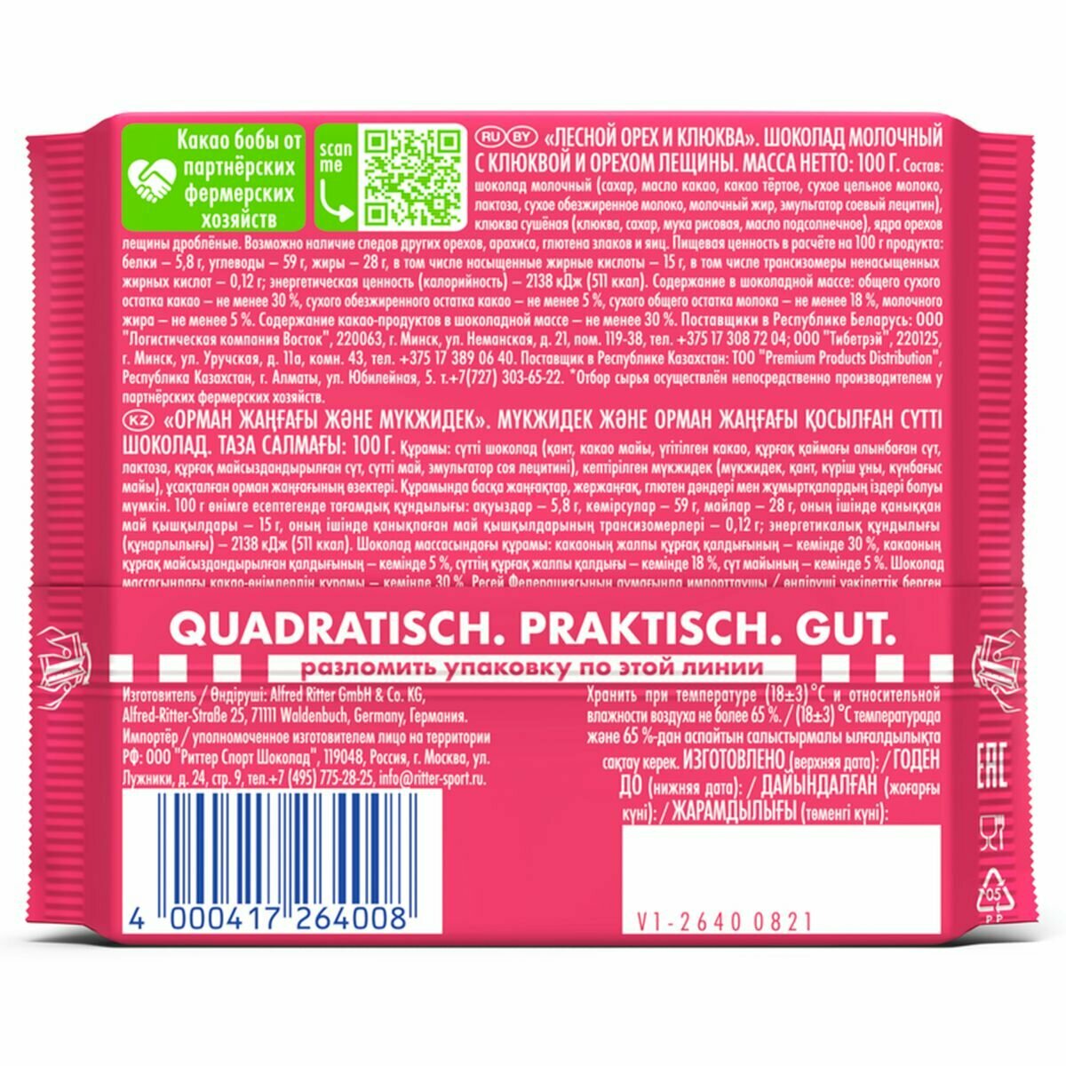 Шоколад молочный Ritter Sport лесной орех и клюква 100 г