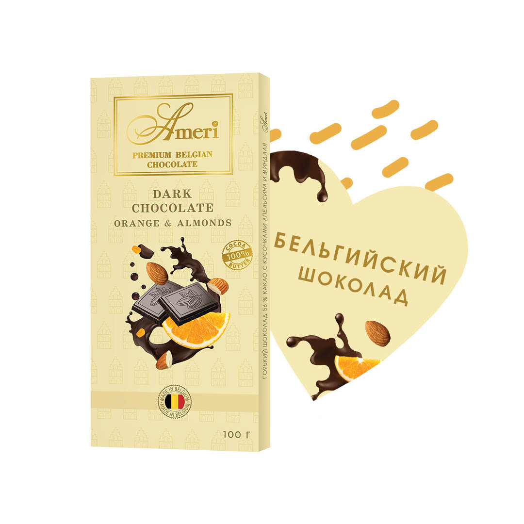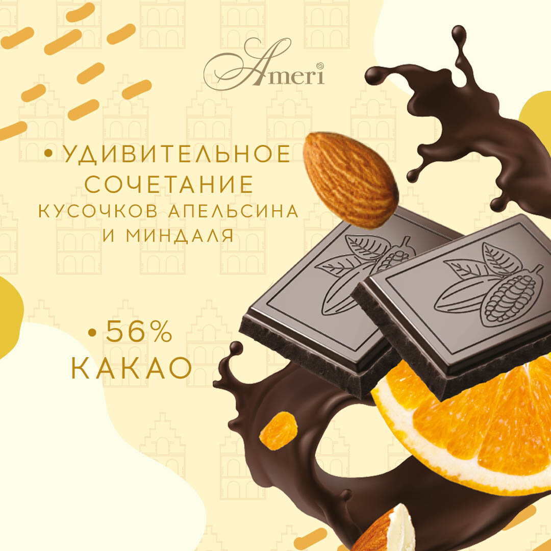 Шоколад Ameri горький 56% с апельсином и миндалем 100 г