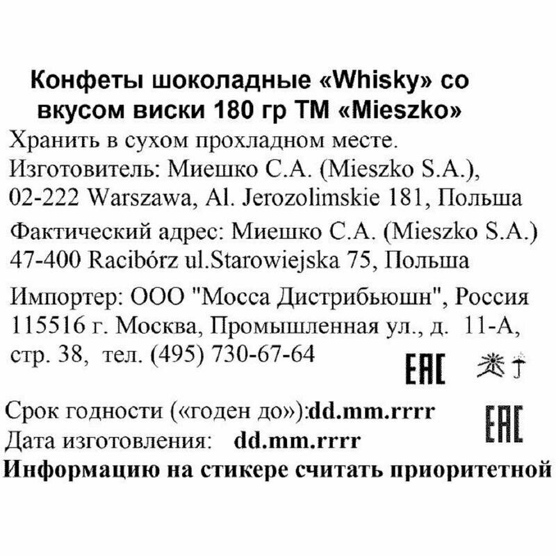 Сервис сравнения цен СкидкаГИД предлагает сравнить цены на товар «Конфеты Mieszko Whisky Liqueur Chocolates 180 г»