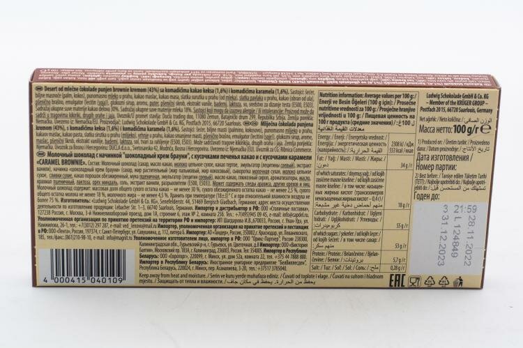Schogetten Caramel Brownie приготовлен из отборных какао-бобов и тающей во рту начинки с шоколадным кремом брауни и хрустящими кусочками карамели.