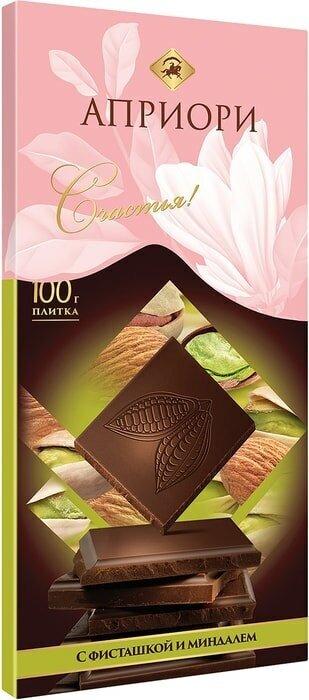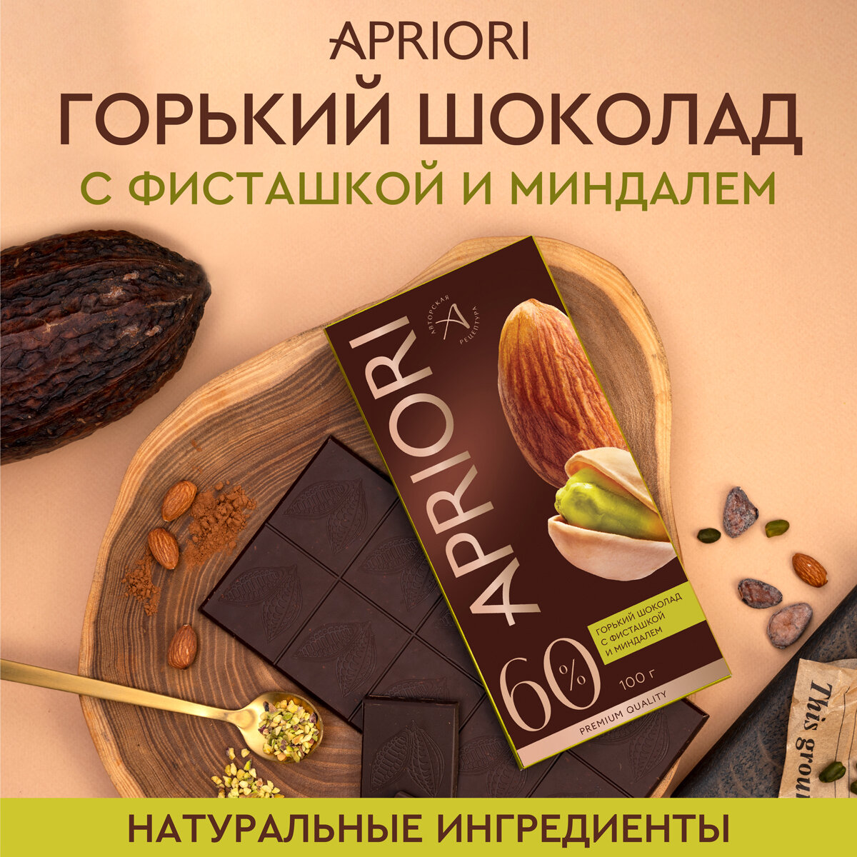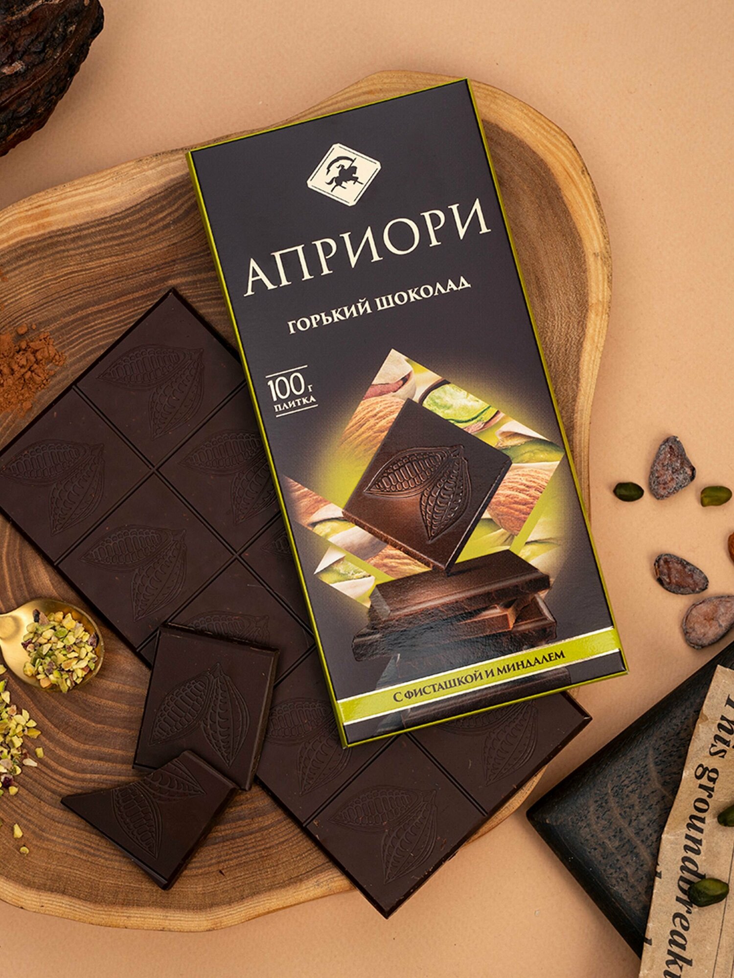 Шоколад АПРИОРИ горький с фисташкой и миндалем 100 г