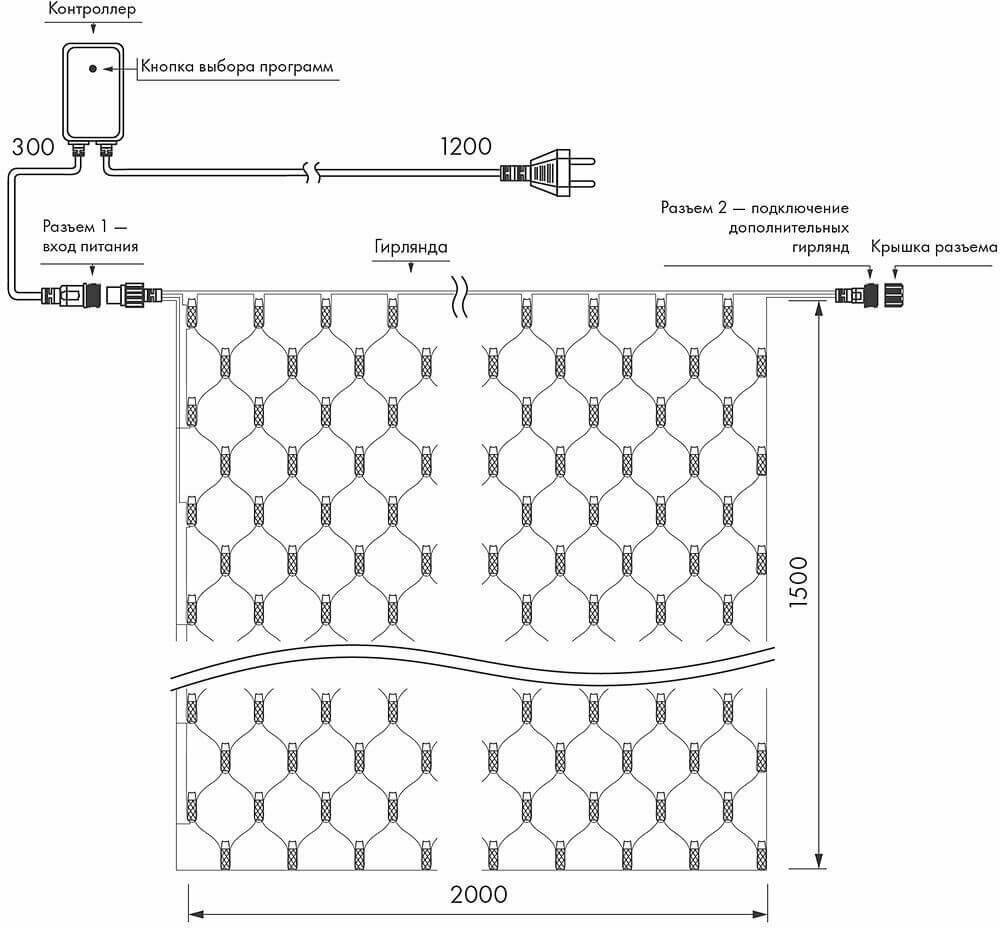 2*15м. Уличная гирлянда сеть синий свет Ardecoled 230V ARD-Netlight-Classic-2000X1500-Clear-288Led Blue (24681)