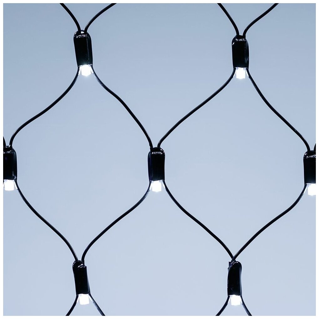 Светодиодная гирлянда "Сеть" серии Classic. Размер 2000*1500 мм (длина 2000 мм, высота 1500 мм). Цвет светодиодов белый. Материал провода - черный ПВХ. Диаметр провода 2.3 мм. Количество светодиодов 288 шт. Размер светодиодов 5 мм с защитным колпачком с вогнутой внутрь линзой. Напряжение питания AC 230V, потребляемая мощность 18W. Гирлянда укомплектована контроллером для смены режимов свечения и сетевой вилкой. Всего 8 встроенных динамических режимов. Степень защиты от воздействия окружающей среды IP65. Температурный режим работы от -30 градусов до +40 градусов по Цельсию. Предусмотрена возможность соединения до 4 гирлянд между собой без дополнительных аксессуаров.