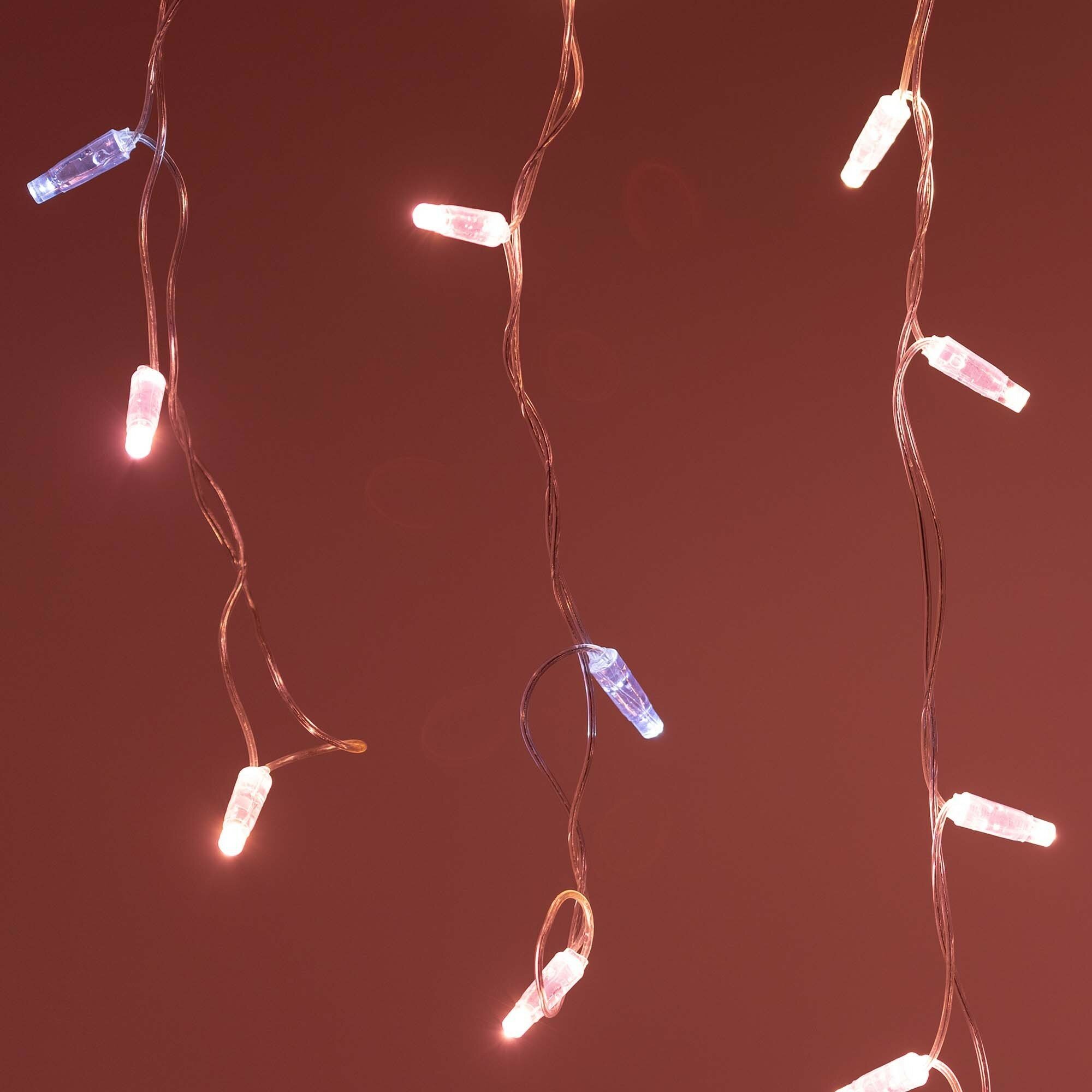 Светодиодная бахрома Classic. Размер 2400 мм (длина 2400 мм, по длине 24 нити высотой 200/600 мм). Количество светодиодов 88 шт размером 7 мм. Основной цвет свечения розовое золото, эффект мерцания редких точек (белый 6000К) с резким световым рисунком (прозрачная вогнутая линза), соотношение светодиодов: 66 розовых постоянного свечения / 12 белых с мерцанием. Провод прозрачный, ПВХ. Питание 230 В, Мощность 6 Вт, защита IP65, применение на улице под навесом. Аксессуары для подключения приобретаются отдельно.Универсальная светодиодная гирлянда "бахрома" серии Classic, предназначенная для декорирования и создания праздничного настроения как внутри помещений, так и снаружи (при соблюдении условий монтажа). Благодаря наличию универсальных соединительных разъемов, имеется возможность нарастить длину до 50 метров без дополнительных аксессуаров. Подобная функциональность позволяет реализовать проект декоративного освещения практически любого масштаба.