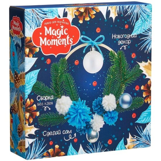 Набор для создания декора Венок синий, арт. GO-3 В этом наборе вы найдете все необходимое, чтобы создать красивый новогодний декор для дома. Прикрепите к деревянному кругу еловые ветки, шарики и мягкие помпоны – и украшение готово! Кстати, помпоны вы тоже сделаете сами с помощью специальной заготовки. В наборе есть подробная инструкция. Красивый новогодний венок хорошо впишется в любой интерьер: нитки в наборе имеют красивый синий цвет. Готовый венок можно повесить в комнате, а можно украсить им входную дверь, чтобы все гости знали, что в вашем доме живет новогоднее настроение! В наборе: основа для венка из фанеры, хвойные ветки, пряжа, заготовка для помпонов, инструкция на русском языке, елочные шарики в ассортименте. Размер упаковки: 25 х 25 х 6 см Возраст: 6+ Magic Moments — наша торговая марка. Гарантируем высокое качество и лучшие условия! Производство: Россия