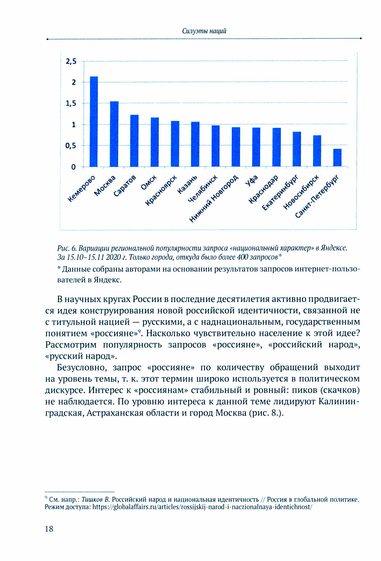 «Силуэты наций» - это первое исследование проекции многомерного вектора самоидентификации современного человека на динамические поверхности мирового и национального развития. Ключевым объектом изучения является такой социальный параметроноситель как национальная идентичность, однако рассматривается он особенным образом – оценивается т. н. «ментальный интерьер бытия» гражданина, под которым здесь понимается специфика общественного сознания. Искались ответы на следующие вопросы: входит ли национальная идентичность, а если да, то как, каким образом в систему самоопределения жителей различных государств, т. е. в образно-символическое пространство этого интерьера; здесь авторы используют возможности медиагеографии для слежения за процессами конструирования, формирования и сохранения национальной идентичности в разных регионах мира.