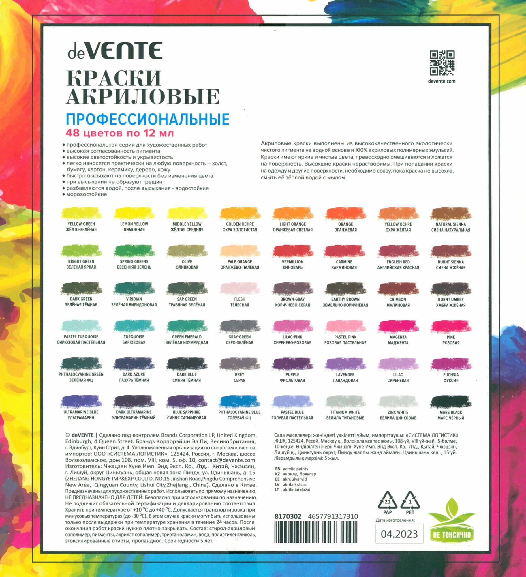 Краски акриловые 48 цветов 12 мл deVENTE