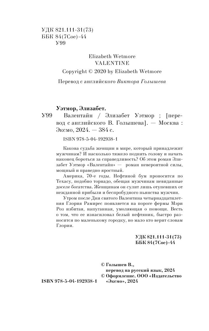 Книга: Валентайн (Элизабет Уэтмор); Эксмо, Редакция 1, 2023