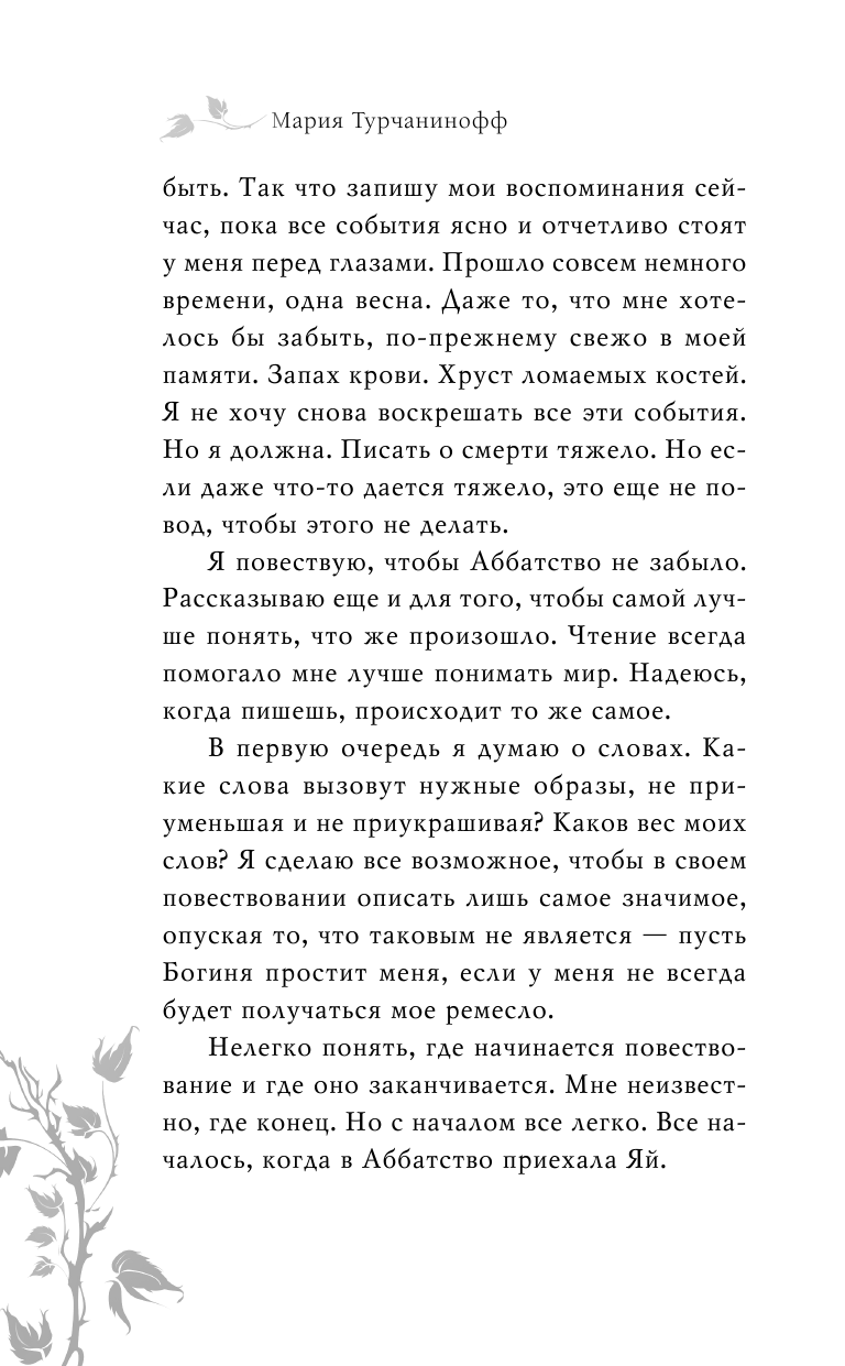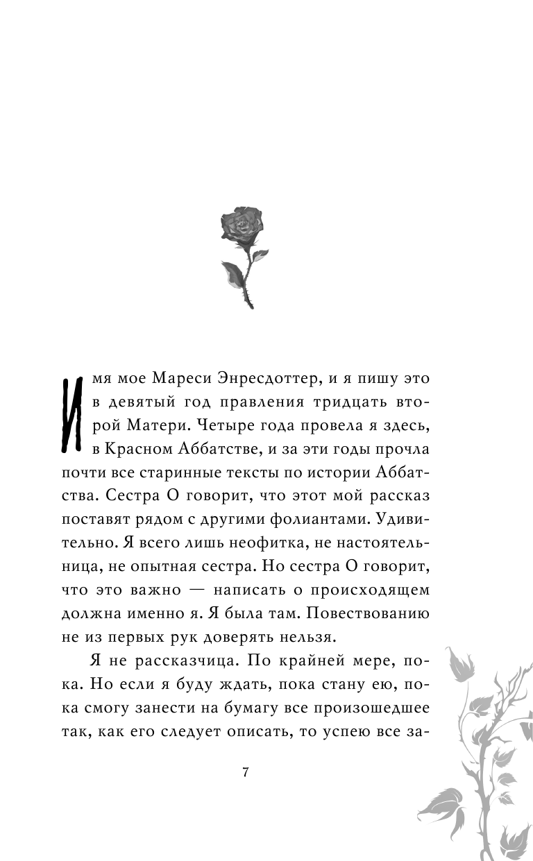 Красное Аббатство на острове Менос — владения женщин и прибежище для девочек со всего мира. Там хранят ценные знания, обучают неофиток, воздают похвалы Праматери и учат использовать ее силу. Неофитка Мареси из Роваса уже несколько лет живет на острове и не променяла бы эту жизнь ни на какую другую. Когда на остров прибывает новая неофитка Яй – девочка с темным прошлым и мучительными воспоминаниями - Мареси берет ее под свое крыло. Однако она не может и представить, что по ее следам придет опасность, и однажды на берега Меноса высадятся жаждущие наживы мужчины с острыми мечами…