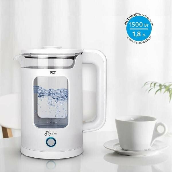 Объем чайника 1,8 л. функционирует от сети напряжением 220 В, а максимальная мощность составляет 1800 Вт. Корпус чайника изготовлен из стекла и высококачественного пластика, такая модель отличаются привлекательным внешним видом, высоким уровнем экологичности и позволяют визуально наблюдать за объемом воды.
