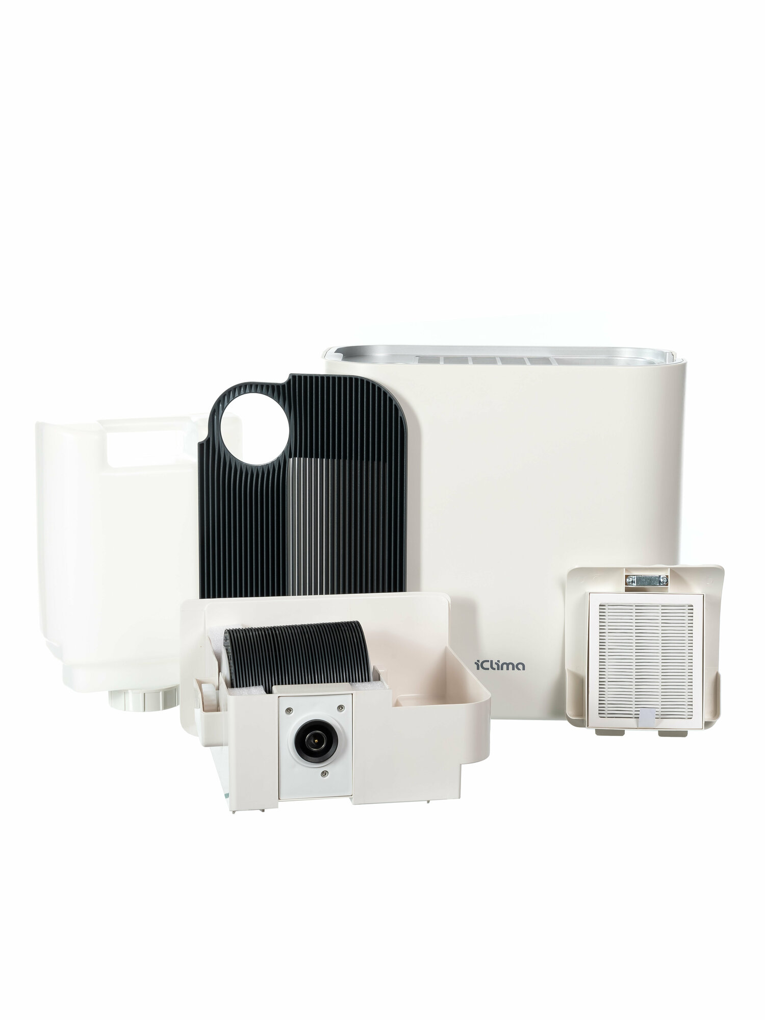 iClima (айКлима) представляет собой мойку воздуха, которая способствует эффективному не только очищению, но и увлажнению воздуха. Данное устройство позволяет удалять из воздуха частички пыли, других загрязнений, а также болезнетворные бактерии и аллергены. При этом можно контролировать скорость потока очищенного воздуха, устанавливать таймер работы от 1 до 12 часов и нужный уровень влажности.