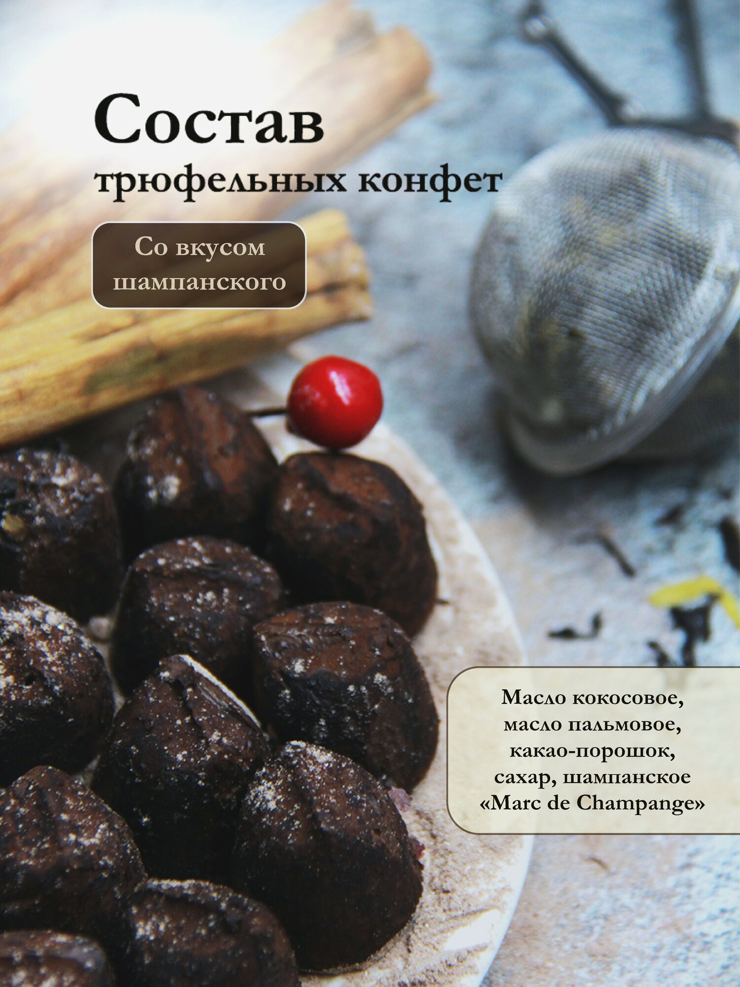 Окунитесь в мир шоколадного трюфеля! Насладитесь интенсивным ароматом какао, его тончайшими оттенками, позвольте радовать вас исключительными ощущениями.Упаковка с оригинальной отделкой выгодно подчеркивает все достоинства вкуса первоклассного десерта.