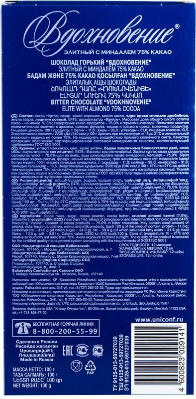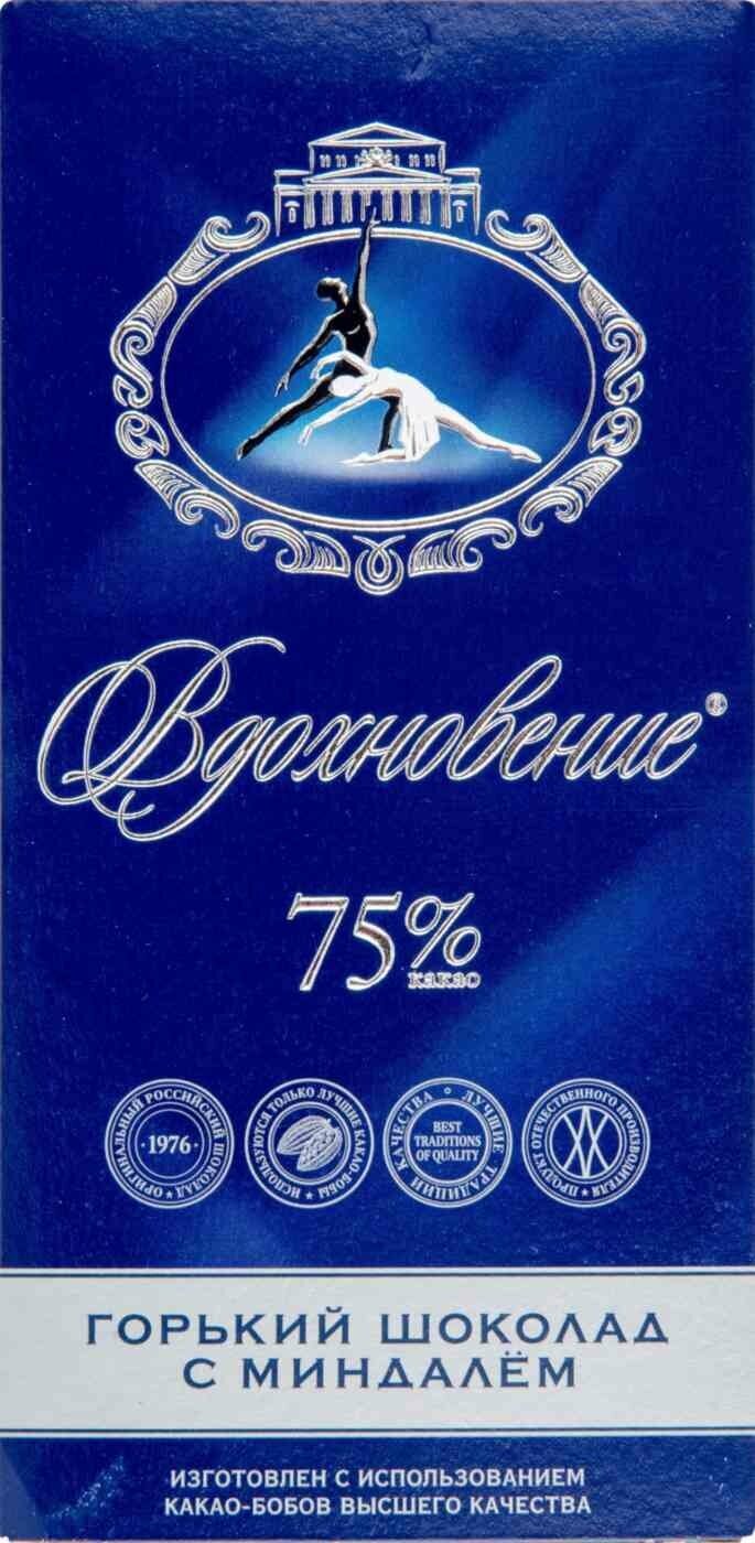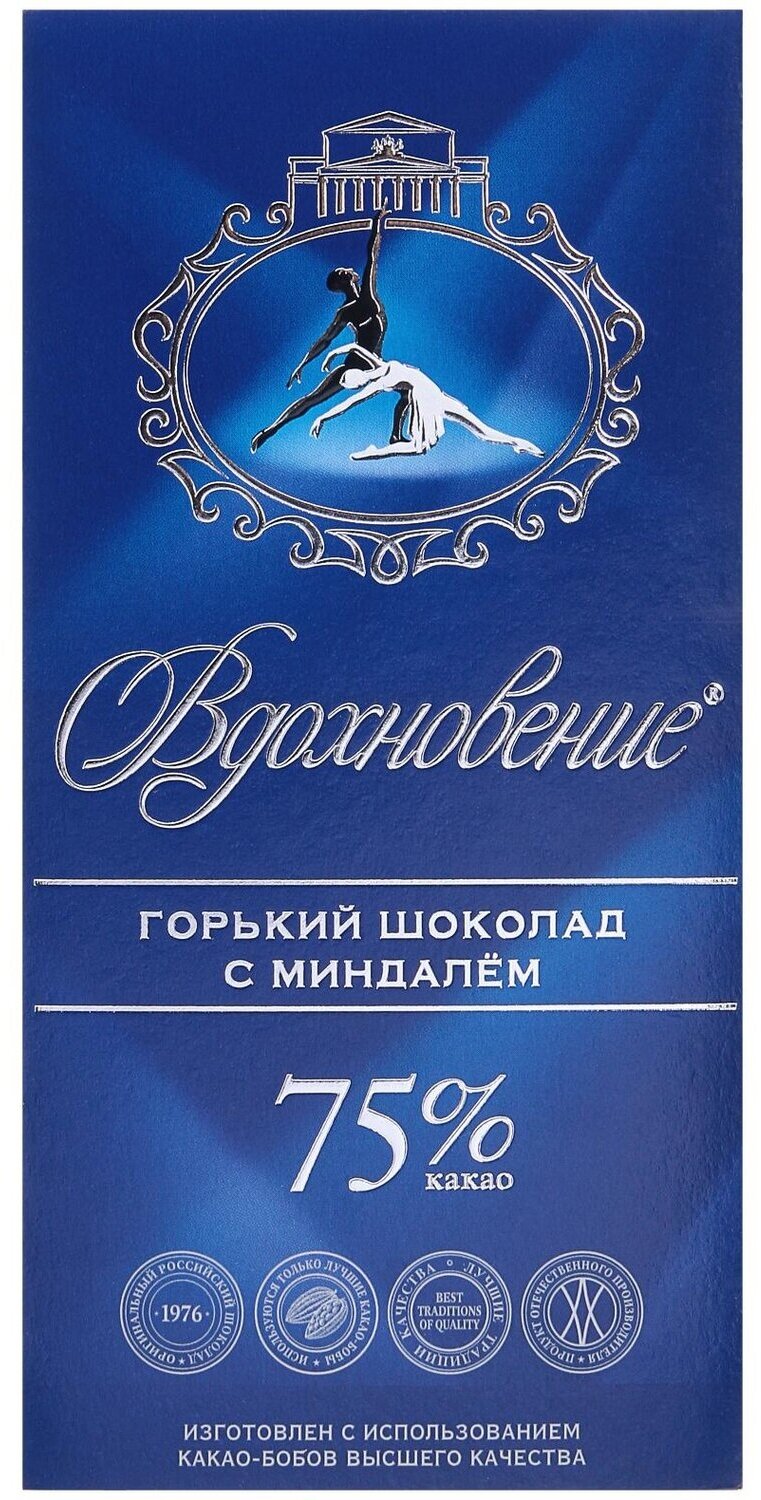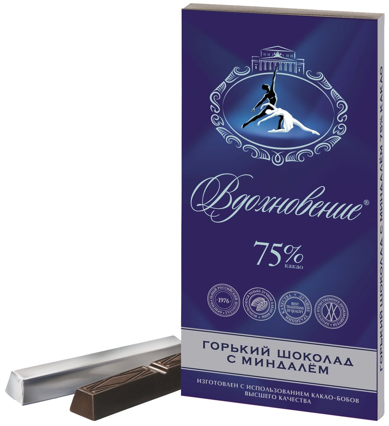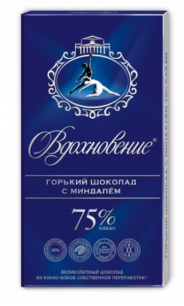 Шоколад Вдохновение Элитный горький с миндалем 75% 100 г