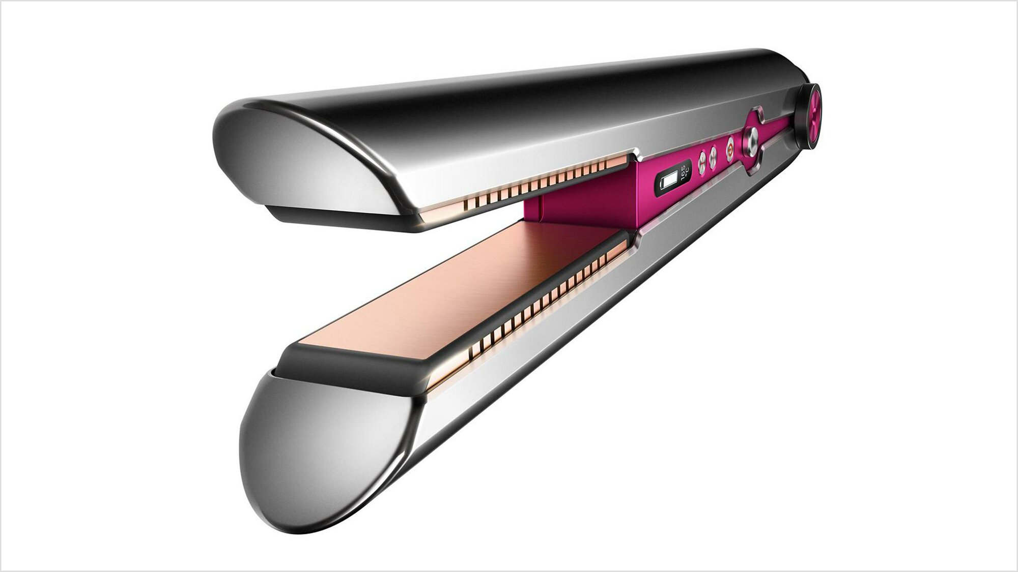 Dyson Corrale единственный беспроводной выпрямитель с гибкими пластинами, которые меняют форму, захватывая пряди волос. Система встроенных датчиков регулирует температуру пластин 100 раз в секунду таким образом, чтобы заданная температура не могла быть превышена.