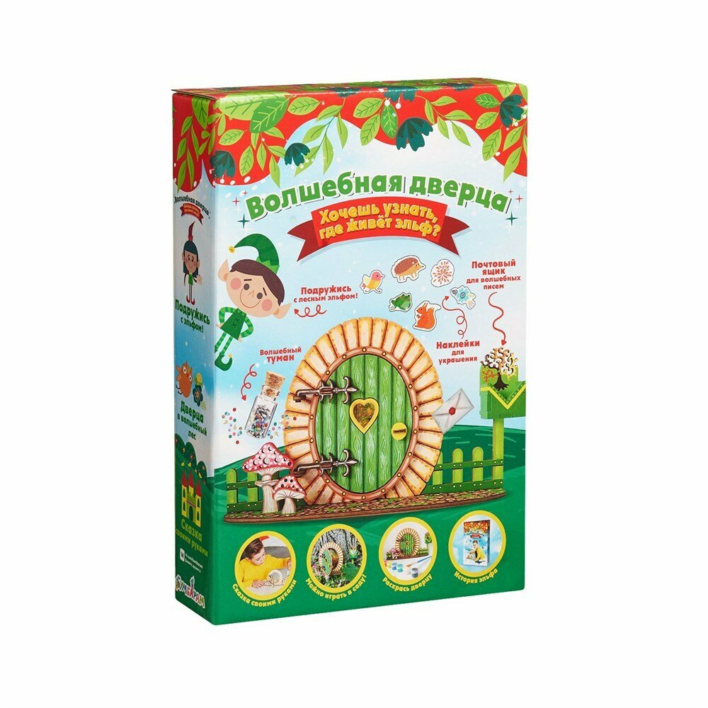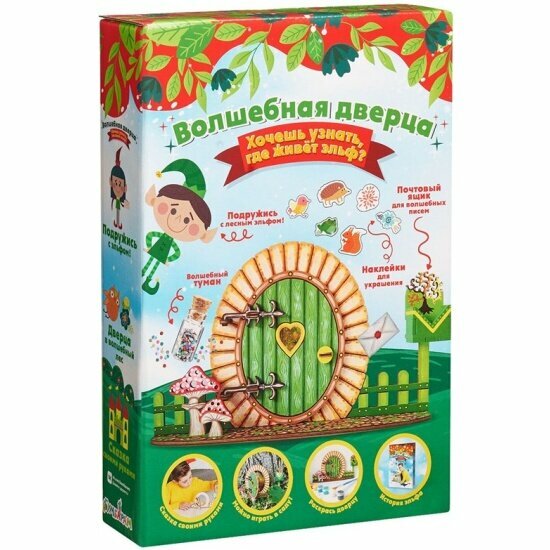 Создайте дверку для настоящего лесного эльфа в своей комнате или саду и подружитесь с ним! Через красивую дверцу он обязательно зайдет к вам в гости. В наборе вы также найдете краски, кисточку, наклейки для украшения двери и бутылочку с волшебным туманом. У эльфа есть почтовый ящик - ему можно написать письмо со своим желанием и он обязательно его исполнит!