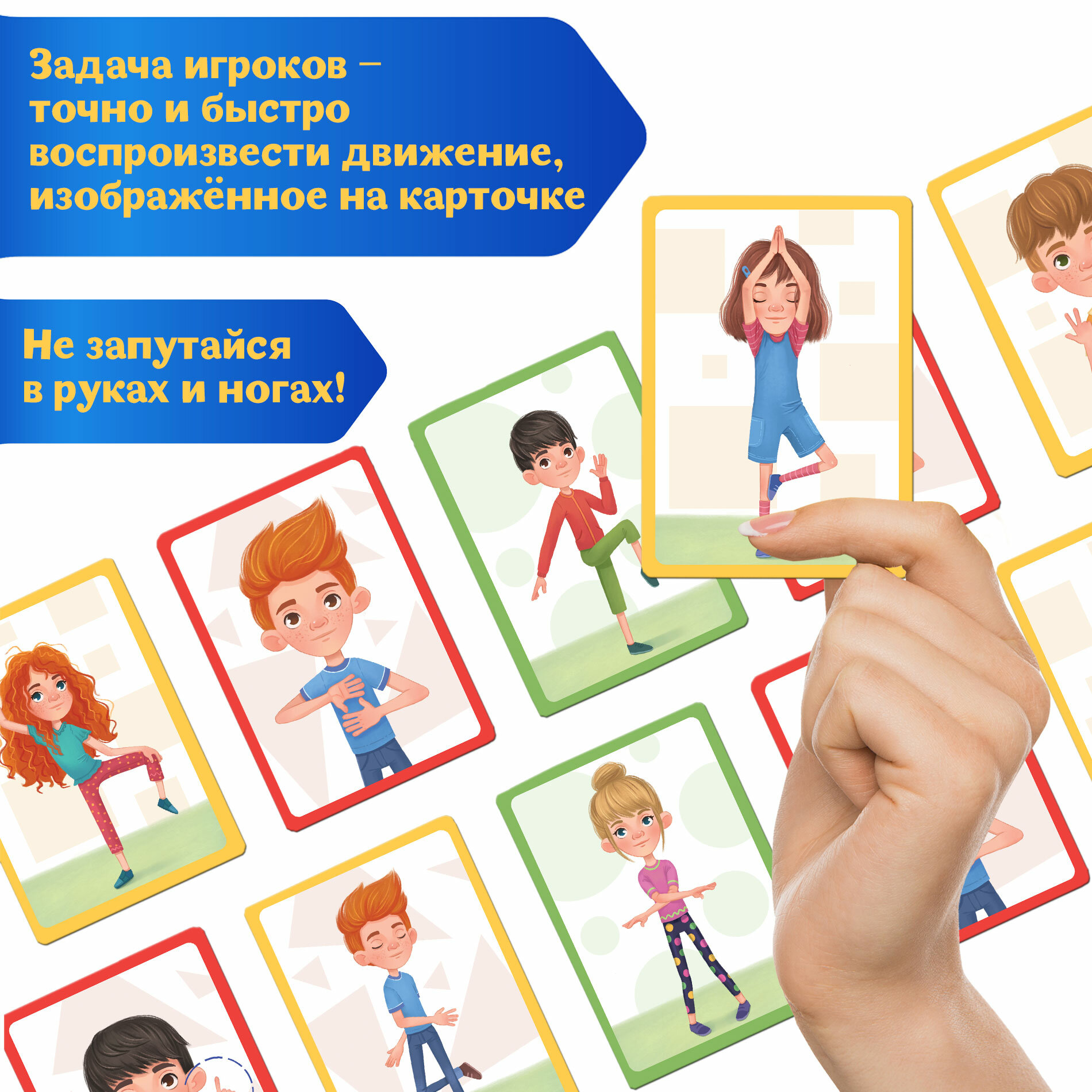 Веселая подвижная нейропсихологическая игра поможет развитию пространственных представлений, внимания, мышления, мелкой и крупной моторики. Задача игроков — точно и быстро воспроизвести движение, изображённое на карточке, а это не так просто, как может показаться на первый взгляд!