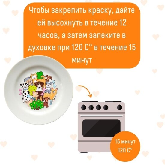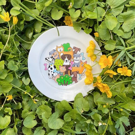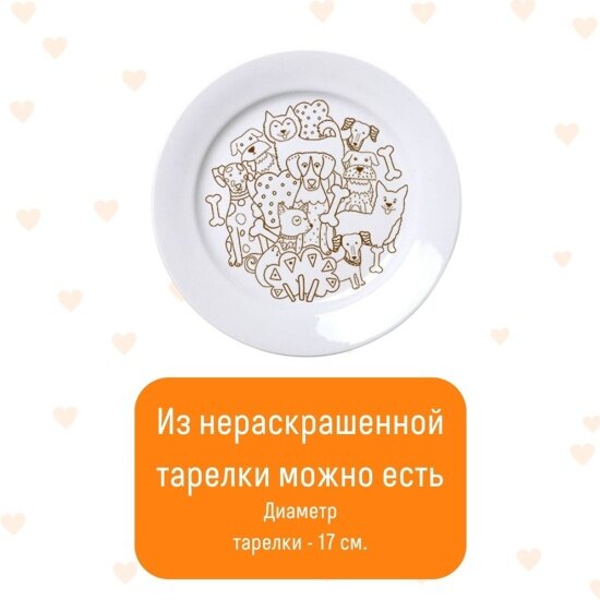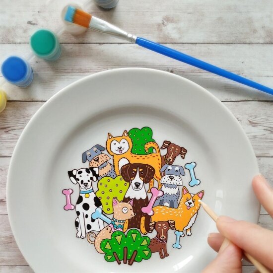 Эта тарелка-раскраска разработана специально для тех, кто обожает собак! И правда, нельзя не любить этих замечательных животных, настоящих друзей человека! Этот необычный творческий набор станет отличным подарком себе и близким людям. На тарелке в наборе уже нанесён рисунок – много собачек, которые обязательно понравятся всем любителям этих активных животных. Раскрасьте их разными цветами и нарисуйте каждой разные пятнышки.