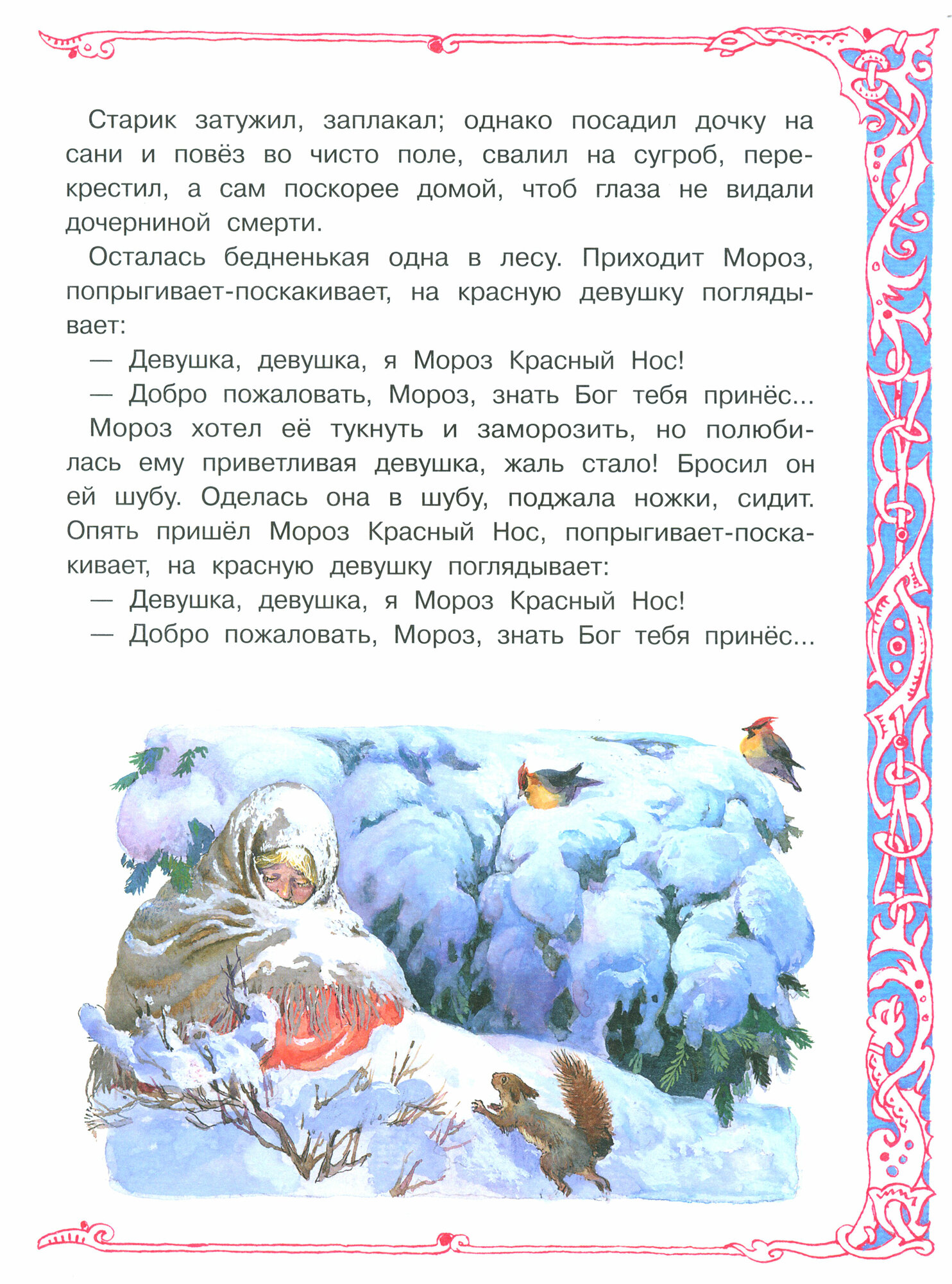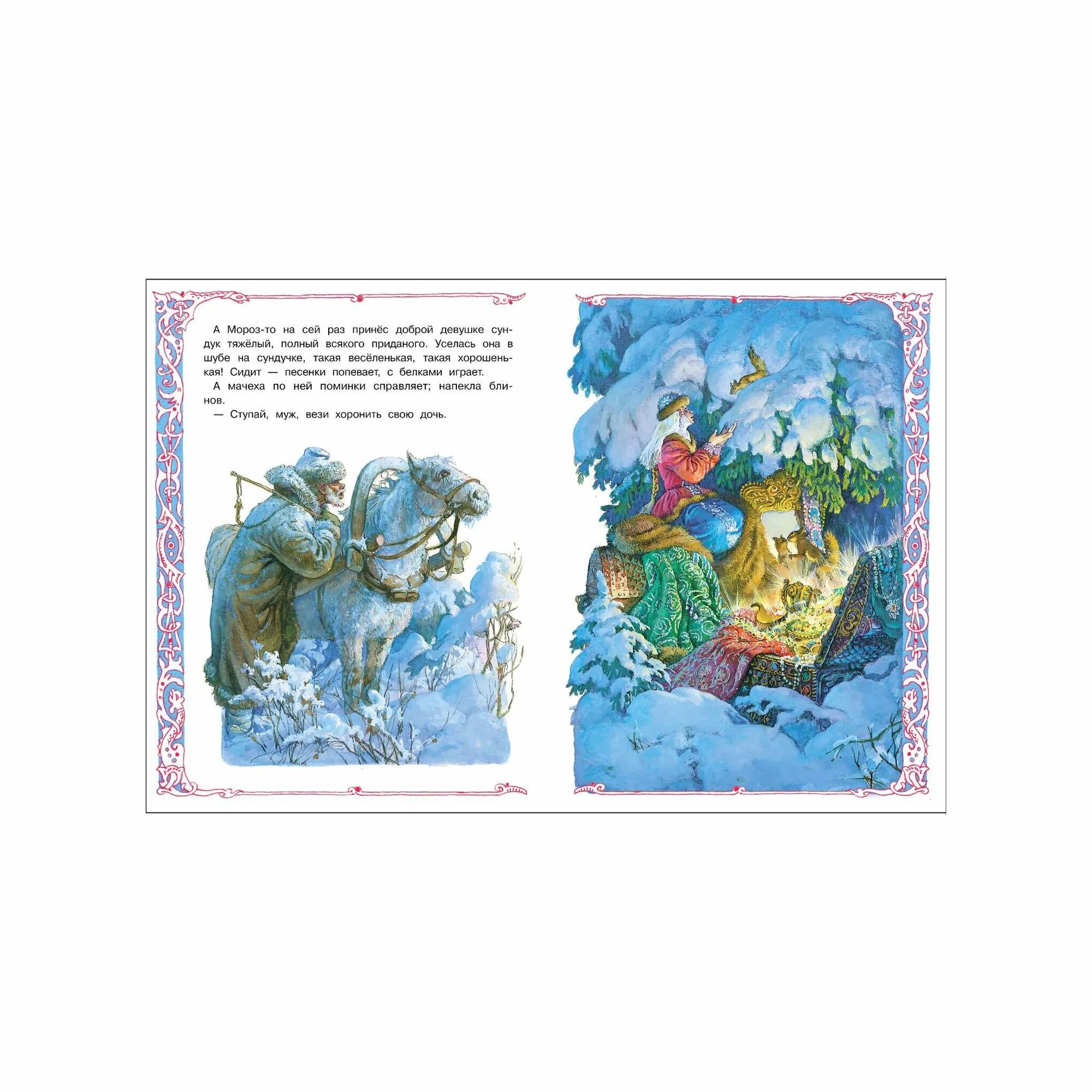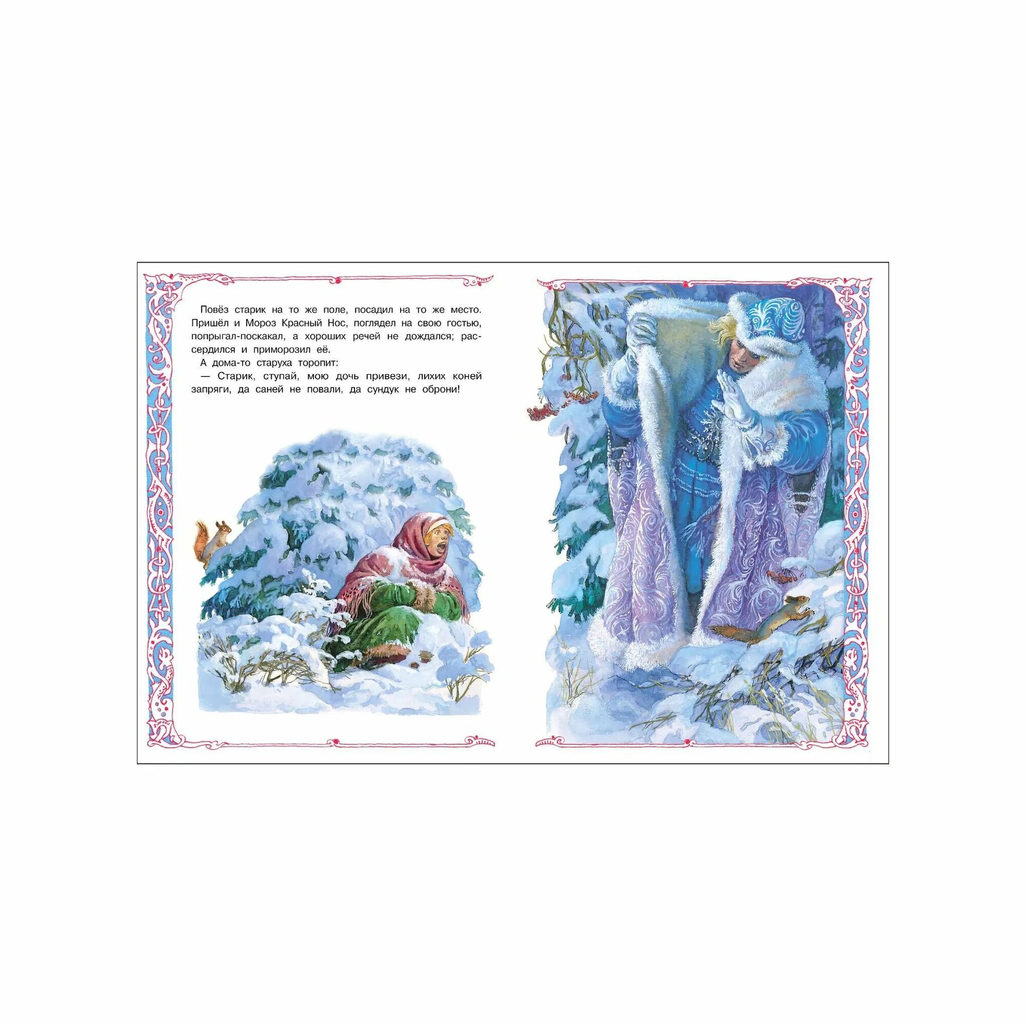 Русская народная сказка "Морозко" в обработке А. Афанасьева с иллюстрациями одного из лучших художников-графиков советского периода Павла Григорьевича Пономаренко. Его работы можно смело назвать шедеврами книжной графики. За свои иллюстрации П. Г. Пономаренко не раз был удостоен медалей на Международных выставках-конкурсах книги.