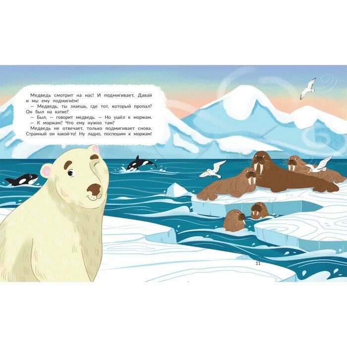 На Севере большой переполох! Кое-кто потерялся, и как его найти, неизвестно. Хочешь помочь в поиске? У тебя наверняка получится! Надо только внимательно выполнить все задания, и ты найдёшь того, кто пропал. Это книга-игра, открой её и познакомься с животными Севера. На каждой странице - новое маленькое приключение. Тебя ждут встречи с белым медведем, полярной совой, северным оленем и другими животными.