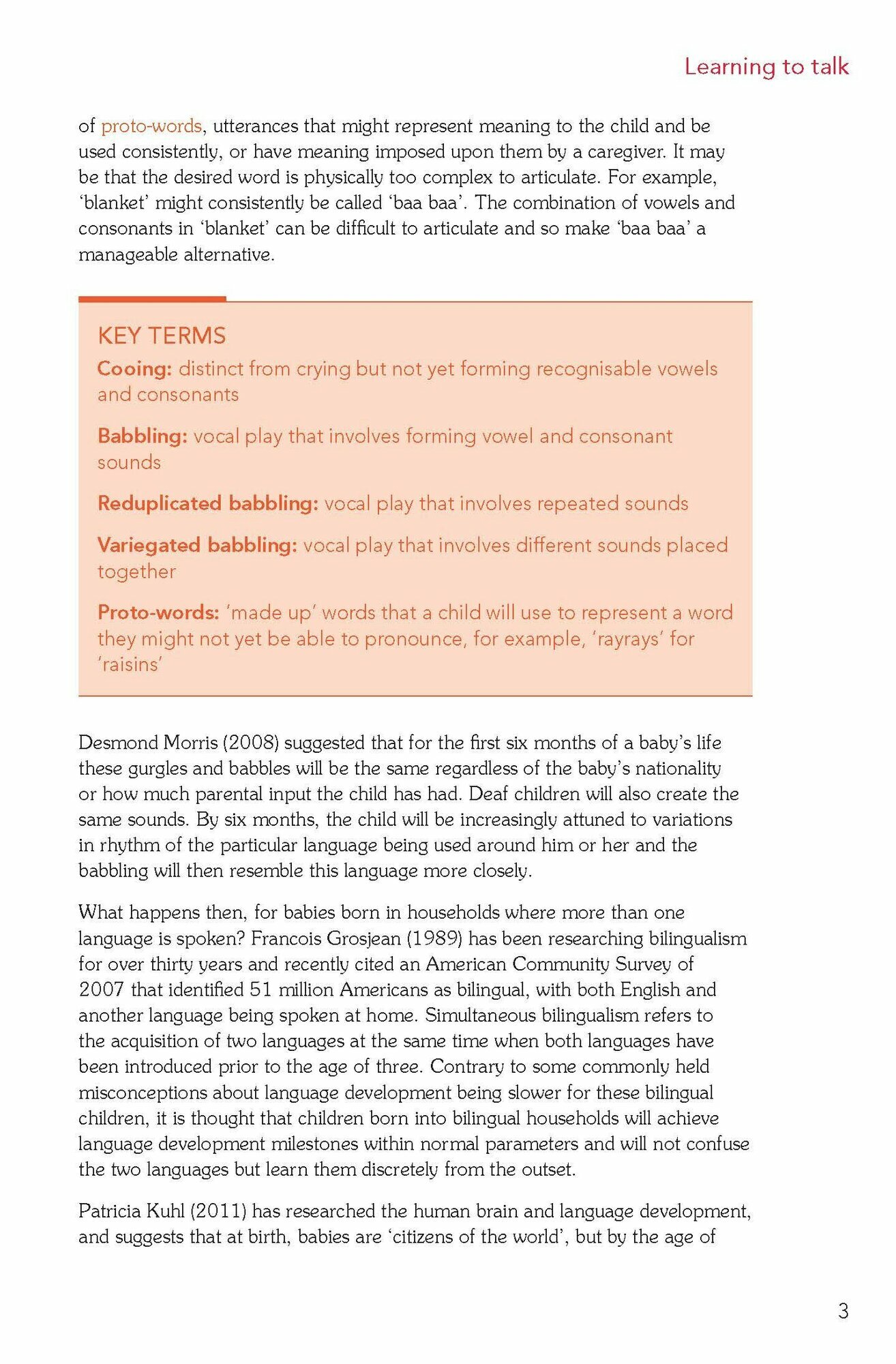 Language Development is an introduction to how we learn to speak, read and write. It is suitable for advanced level students and beyond. Written with input from the Cambridge English Corpus, it considers the theoretical approaches to language development from early childhood to teenager. Language Development explores the lifelong process of learning a language, as well as the social factors that affect it. Using activities to help explain analysis methods, this book guides students through major modern issues and concepts. It summarises key concerns and modern findings, while providing inspiration for language investigations and non-examined assessments (NEAs) with research suggestions.