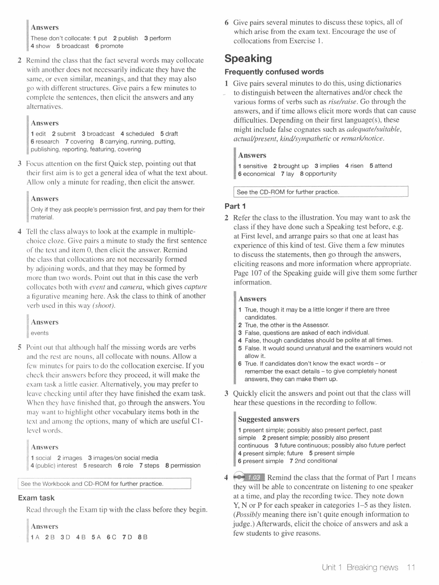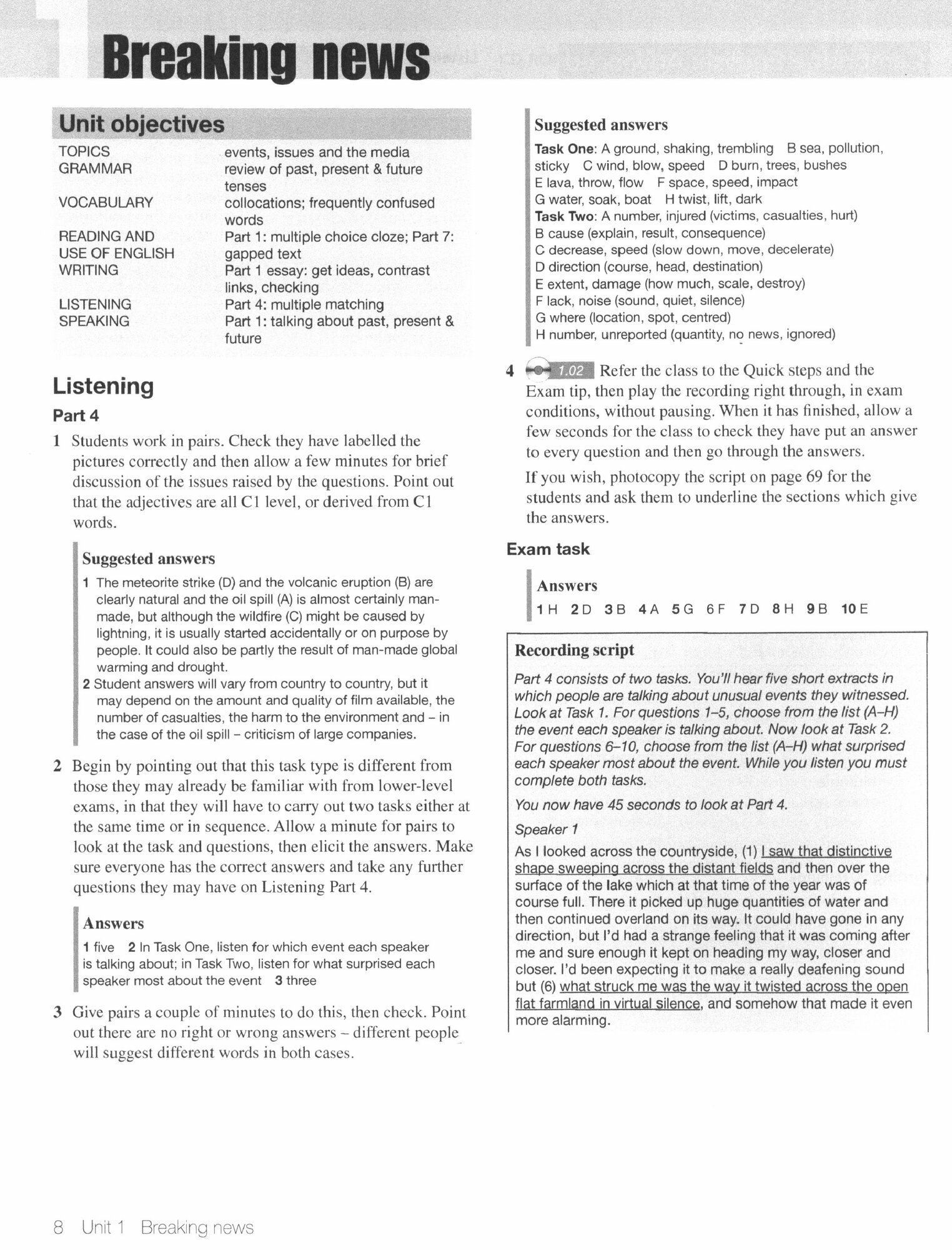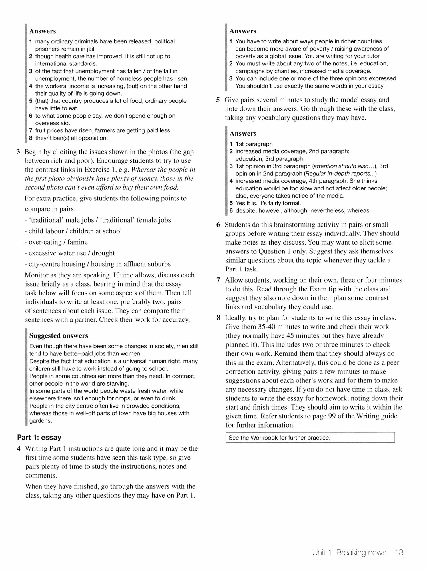 Книга для учителя включает в себя пошаговое руководство по представлению и преподаванию всего материала, содержащегося в учебнике, а также предложения по альтернативным подходам и дополнительным занятиям. Издание предоставляет полные ключи к ответам со сценариями записей для учебника. Ключи включают в себя примеры и типовые ответы для письменных заданий. Существуют копируемые проверочные тесты для оценки успеваемости учащихся каждые два раздела.