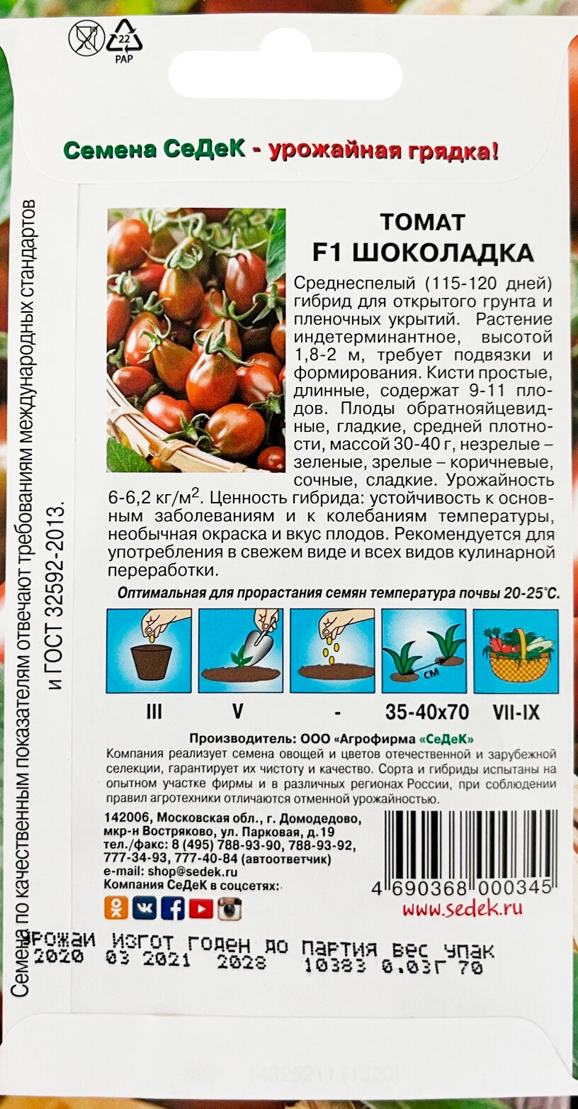 - Томат Шоколадка F1. СеДеК