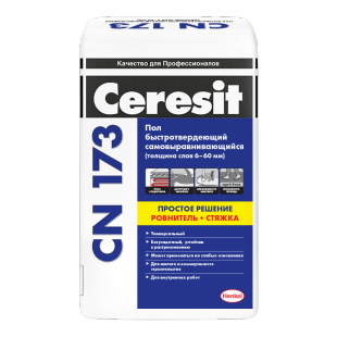Наливной пол цементный Ceresit CN 173 два в одном используется как стяжка и финишный ровнитель для внутренних отделочных работ в жилых и коммерческих помещениях. Самовыравнивающаяся, быстротвердеющая, универсальная смесь простота в использовании, наносится ручным и механизированным способом слоем от 6 до 60 мм.