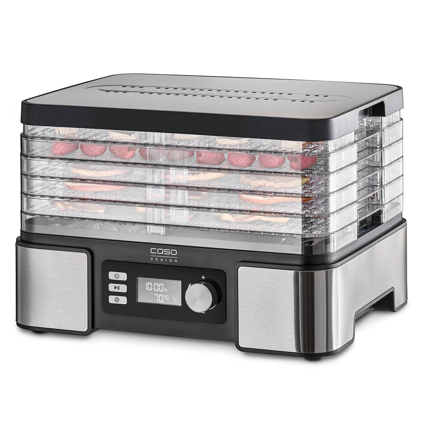 Сушильные аппараты торговой марки Caso являются полезным инструментом для сушки овощей, ягод, вяления мяса и приготовления пастилы. Приборы позволяют сократить объем продуктов, сохраняя при этом их пищевую ценность, сэкономить место, сохранить питательные вещества и наслаждаться вкусными закусками в любое время года.