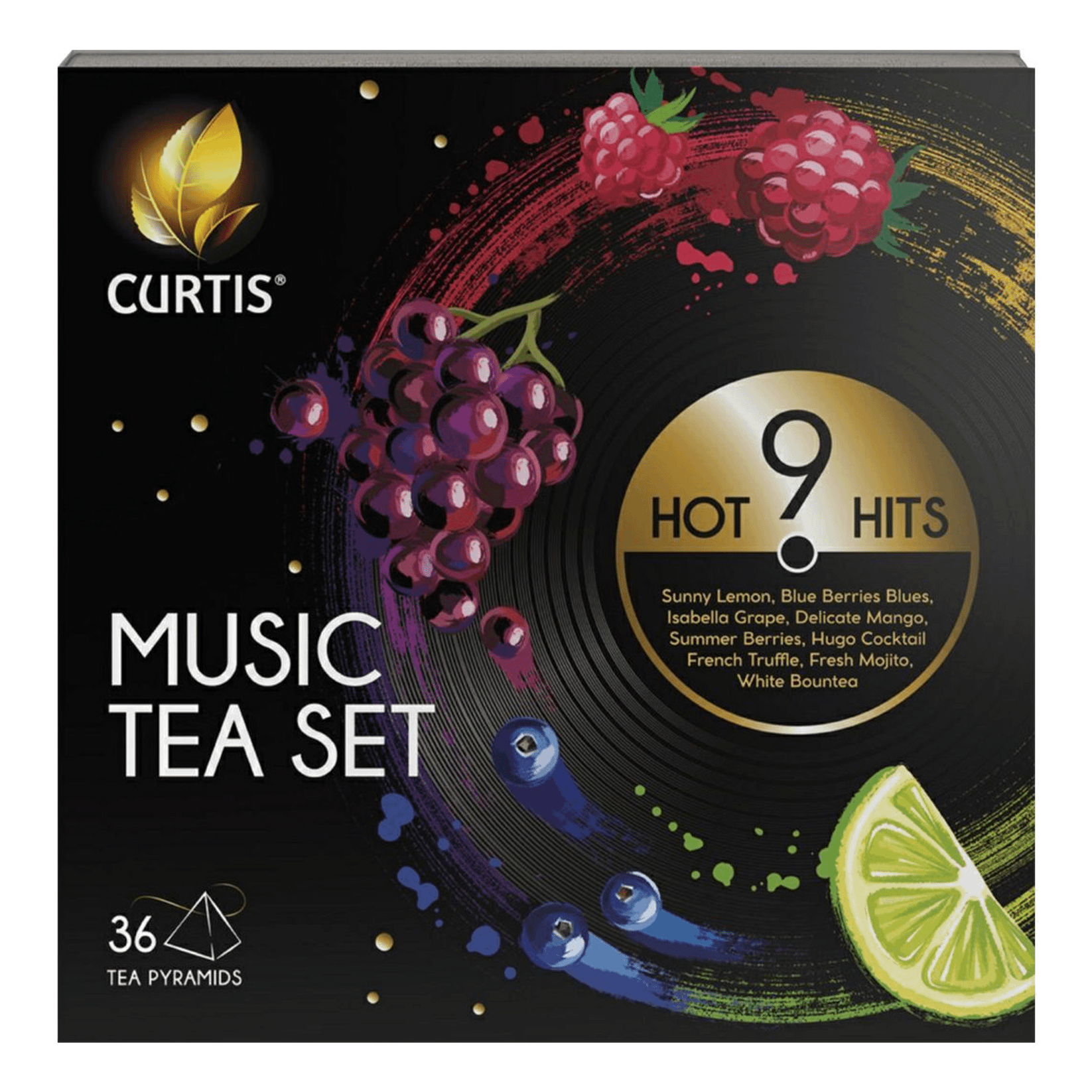 Чай ассорти Curtis Music Tea Set 36 пакетиков. Ассорти чая в пирамидках Curtis ?Music Tea Set? - это 9 ярких вкусов в пирамидках и подарочной упаковке - с премиальным дизайном, акцентированном на вкусах чая и музыкальной надстроийке. Curtis ?Music Tea Set? - это не просто чай, а уникальная диджитальная настройка для времени наедине с собой за чашкой напитка Curtis. Это - большое ассорти неповторимых вкусов, идеально дополненных вдохновляющими музыкальными заставками.В комплекте 2 упаковки.