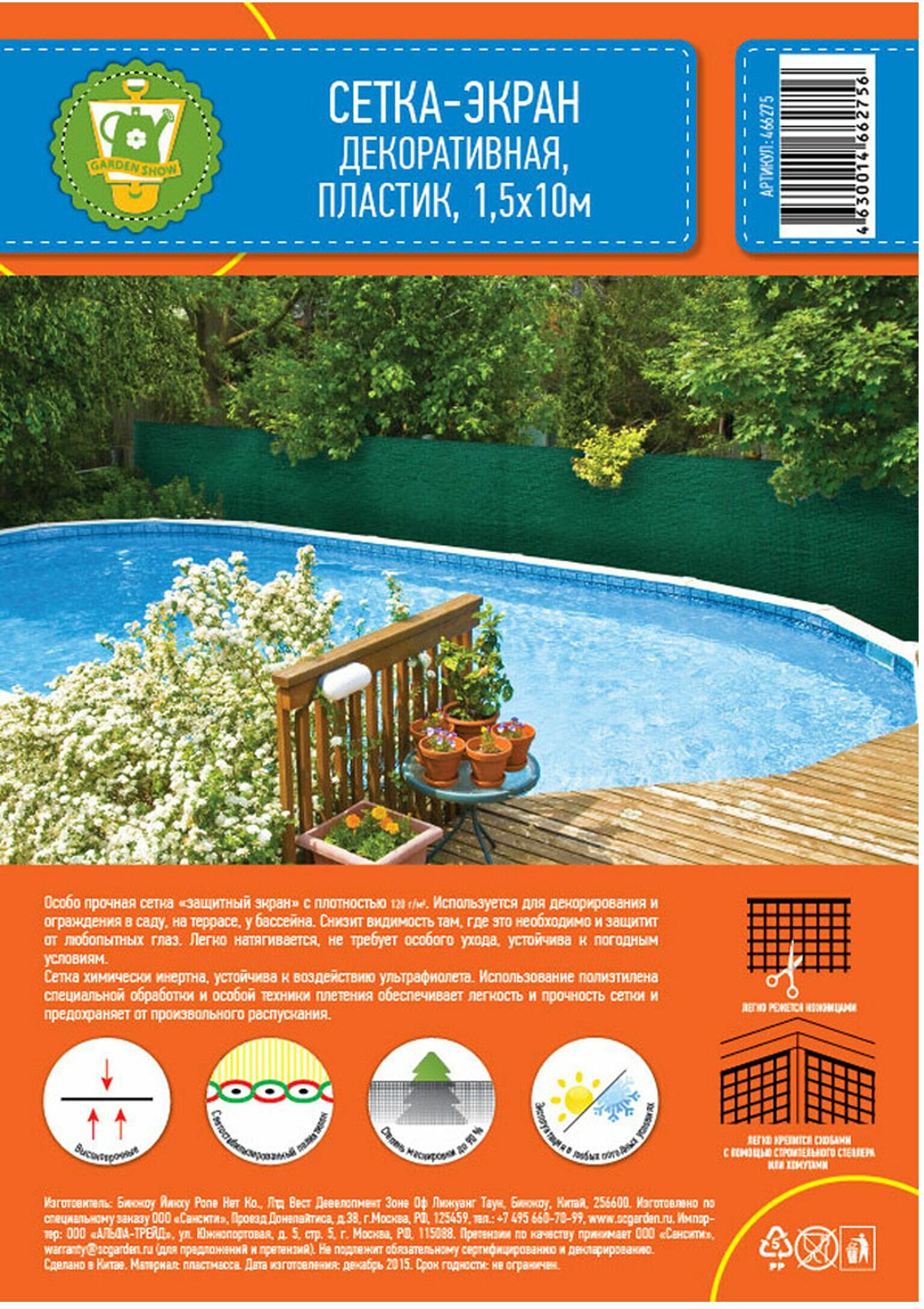 Декоративная сетка-экран GARDEN SHOW - прекрасное средство для зонирования пространства сада и создания ограждений, снижающих видимость. Подходит для декорирования беседок и арок, поддержки плетистых растений.