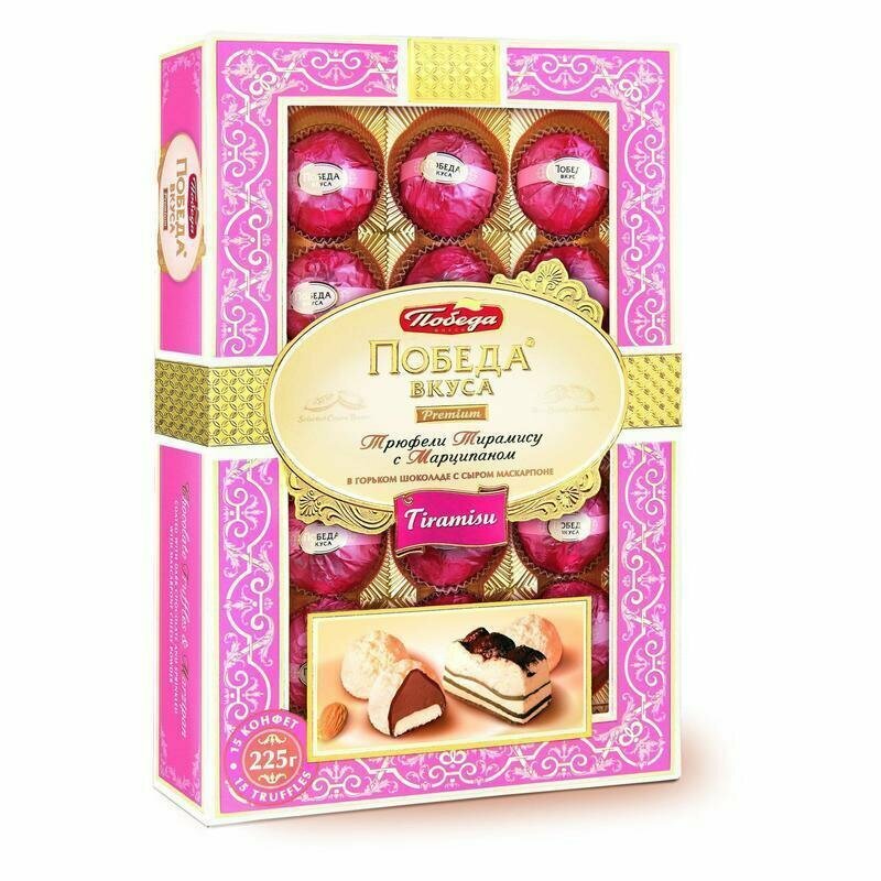 Кондитерская фабрика Победа выпустила новый продукт. Шоколадные трюфели Победа Вкуса с марципаном. Мы надеемся, что вы по достоинству оцените вкус шоколадных трюфелей Тирамису с марципаном в горьком шоколаде с сыром маскарпоне, который доставит вам неповторимое, утонченное наслаждение.