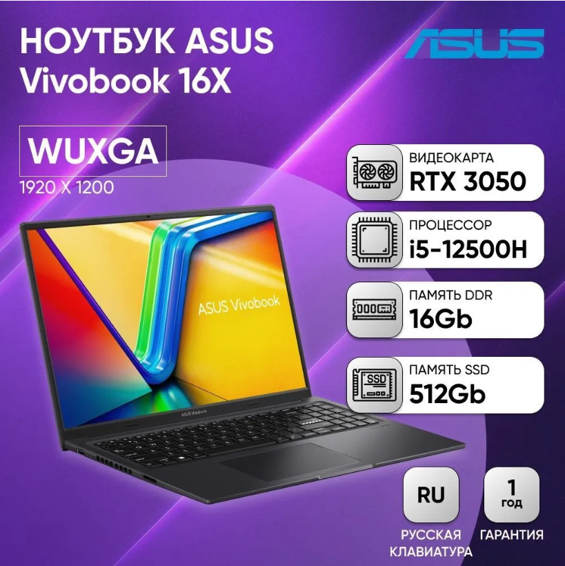 | Полное наименование | ASUS VivoBook 16X K3605ZC i5-12500H 16Gb SSD 512Gb NVIDIA RTX 3050 4Gb 16 WUXGA IPS 50Вт*ч No OS Черный K3605ZC-N1155 90NB11F1-M00670 |