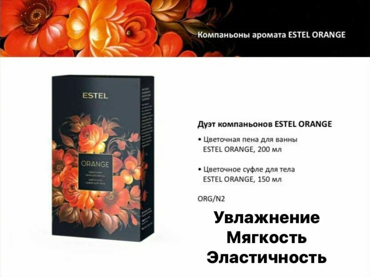 | Состав набора | Пена ORANGE для ванны ESTEL PROFESSIONAL цветочная 200 мл; Суфле ORANGE для тела ESTEL PROFESSIONAL цветочное 150 мл. |