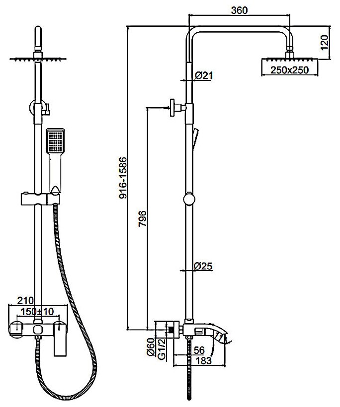 | Форма верхнего душа | квадрат |
