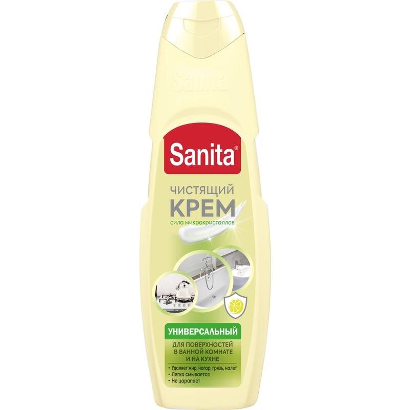 Крем " Sanita " Сила лимона для чистки кухонных поврехностей и ванной комнаты 600г