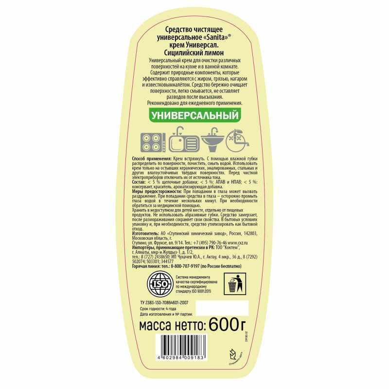 Сервис сравнения цен СкидкаГИД предлагает сравнить цены на товар «Крем " Sanita " Сила лимона для чистки кухонных поврехностей и ванной комнаты 600г»