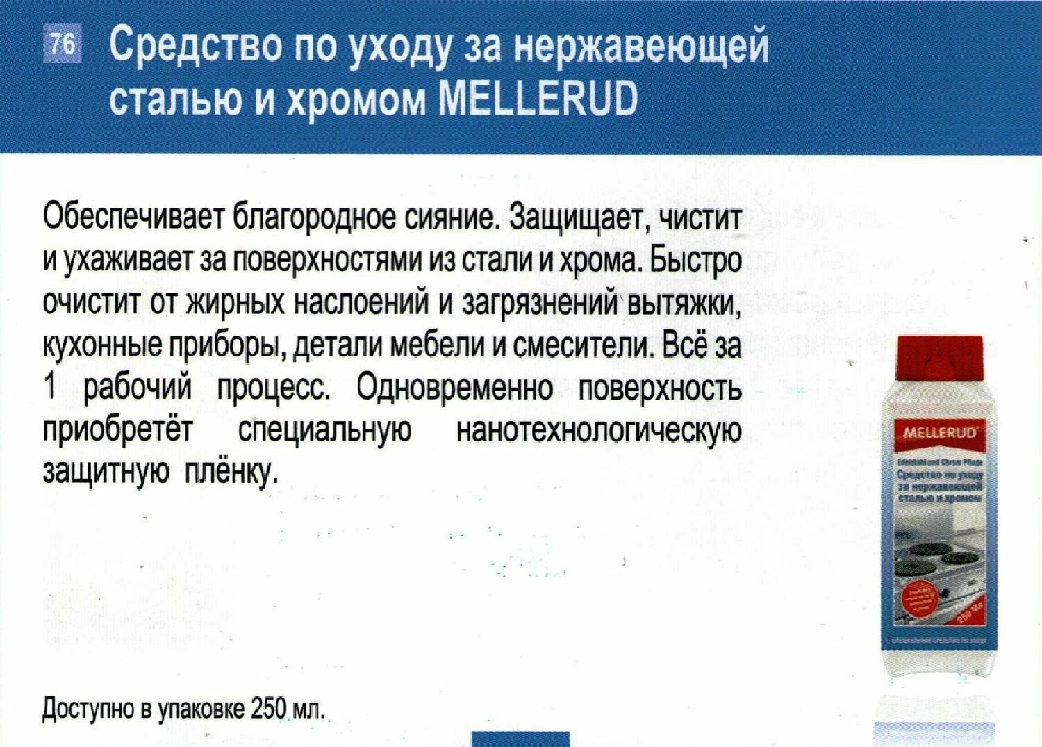Средство Mellerud по уходу за нержавеющей сталью и хромом 250мл.