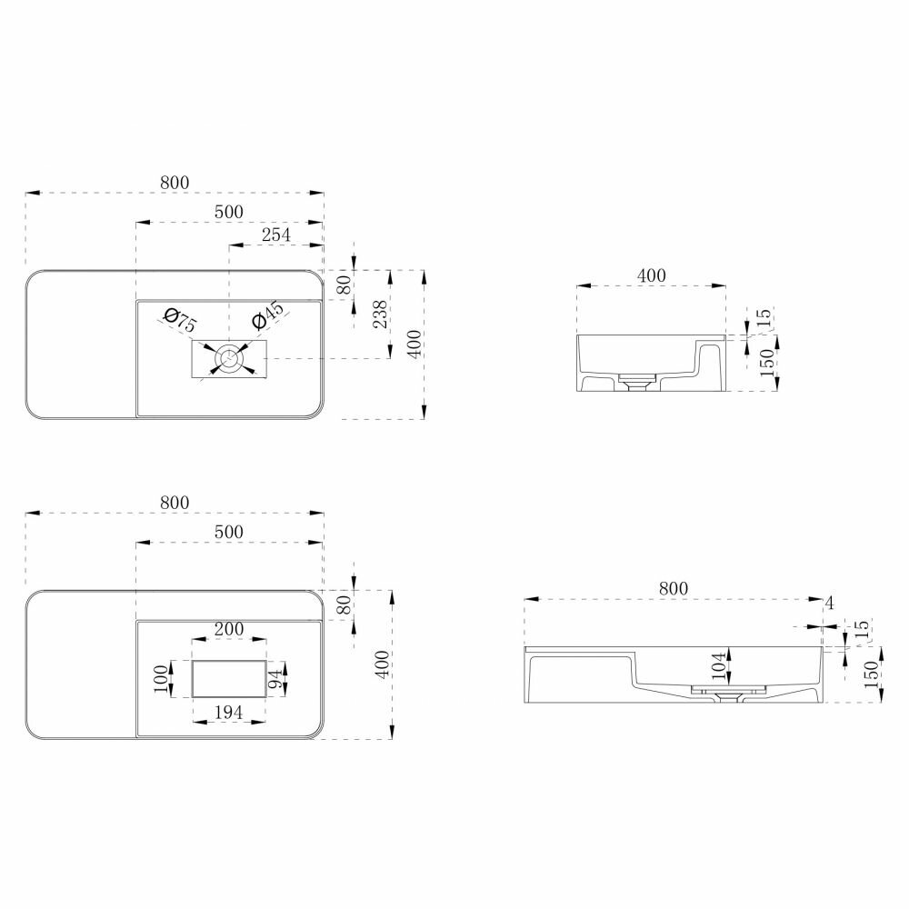 | Без отверстий под смеситель | Без отверстий под смеситель |