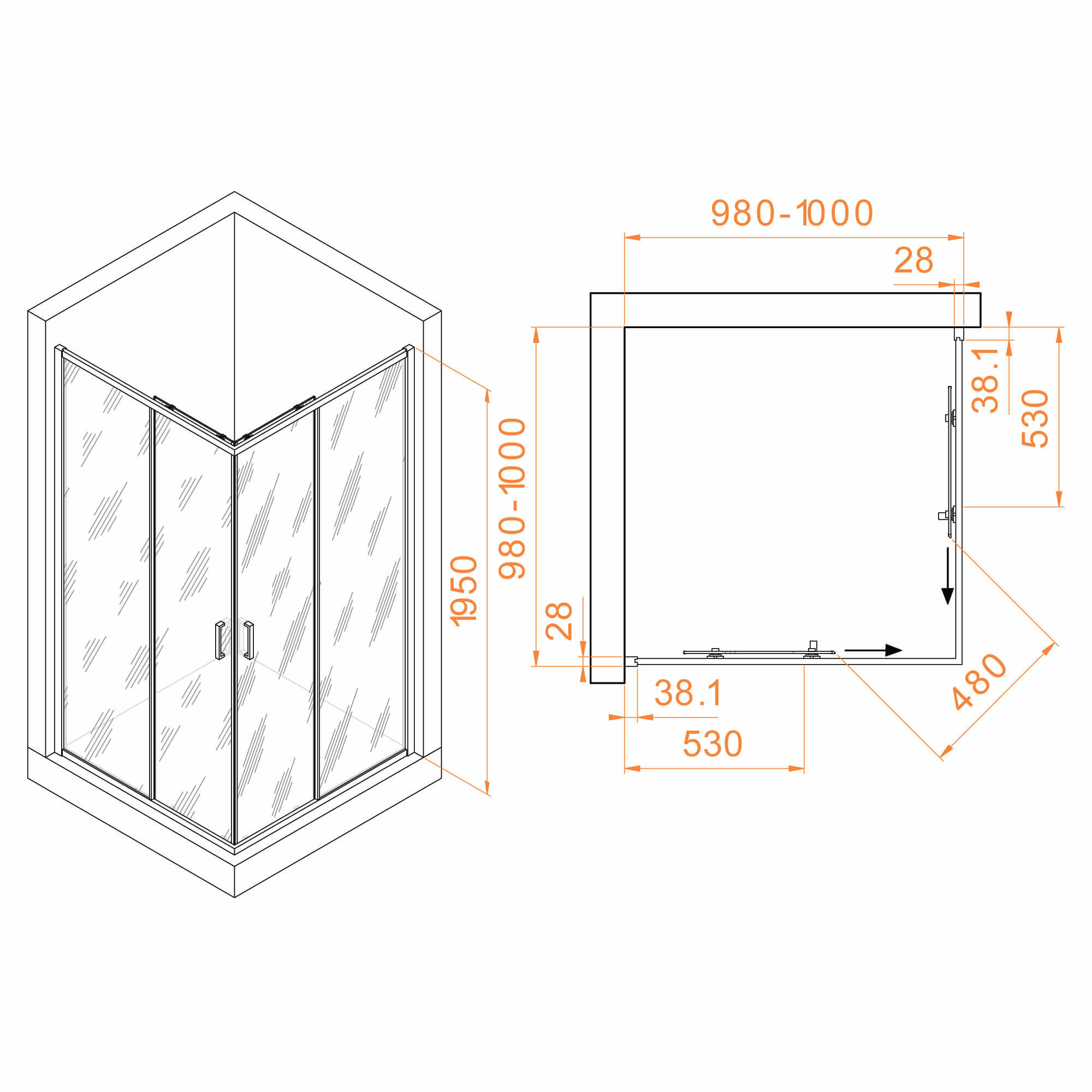 | Размеры с диапазоном регулировок | (980-1000)х(980-1000) |